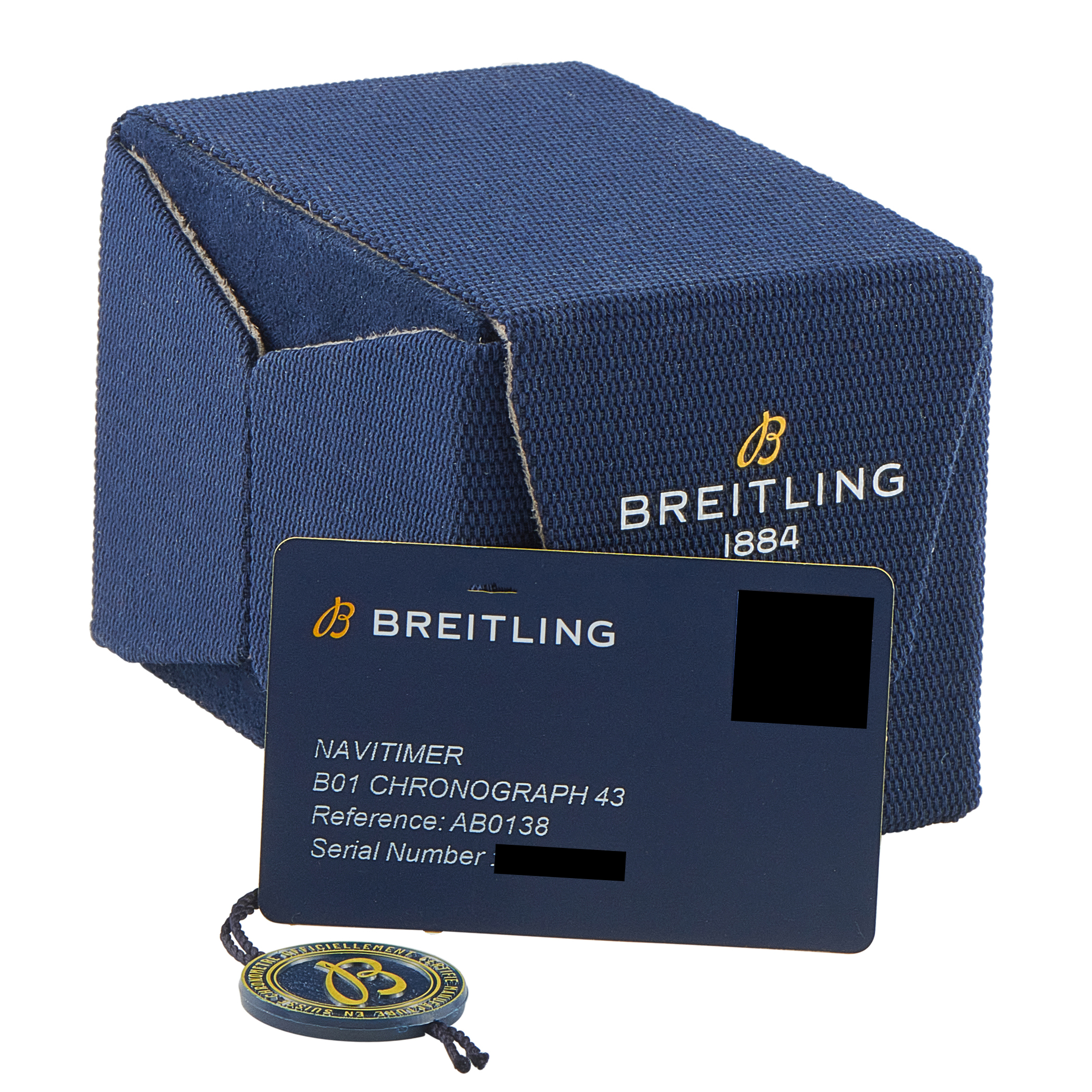 This Breitling Navitimer B01 Chronograph 43 Ice Blue Dial Steel Watch AB0138241C1A1 comes with papers and the manufacturer’s box.