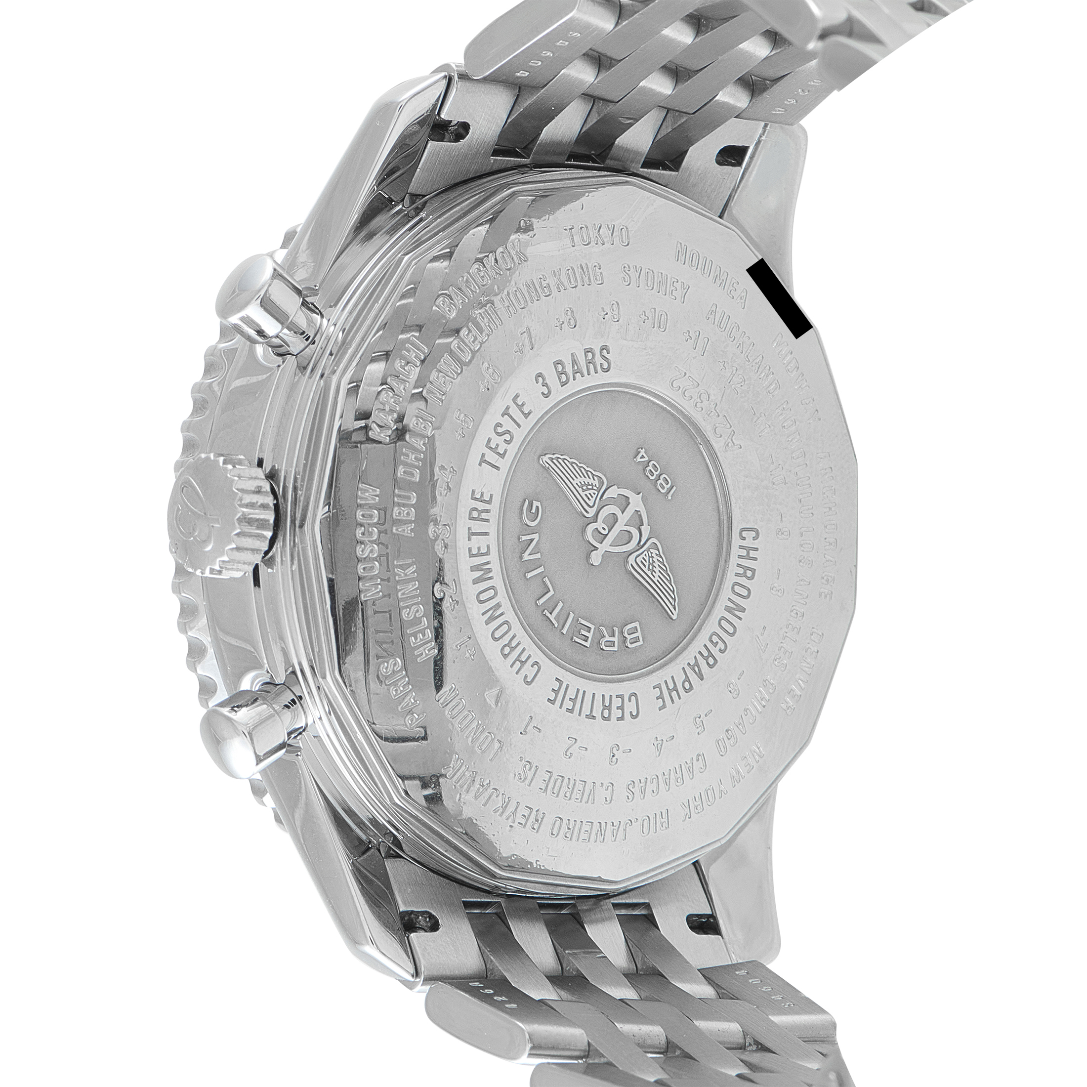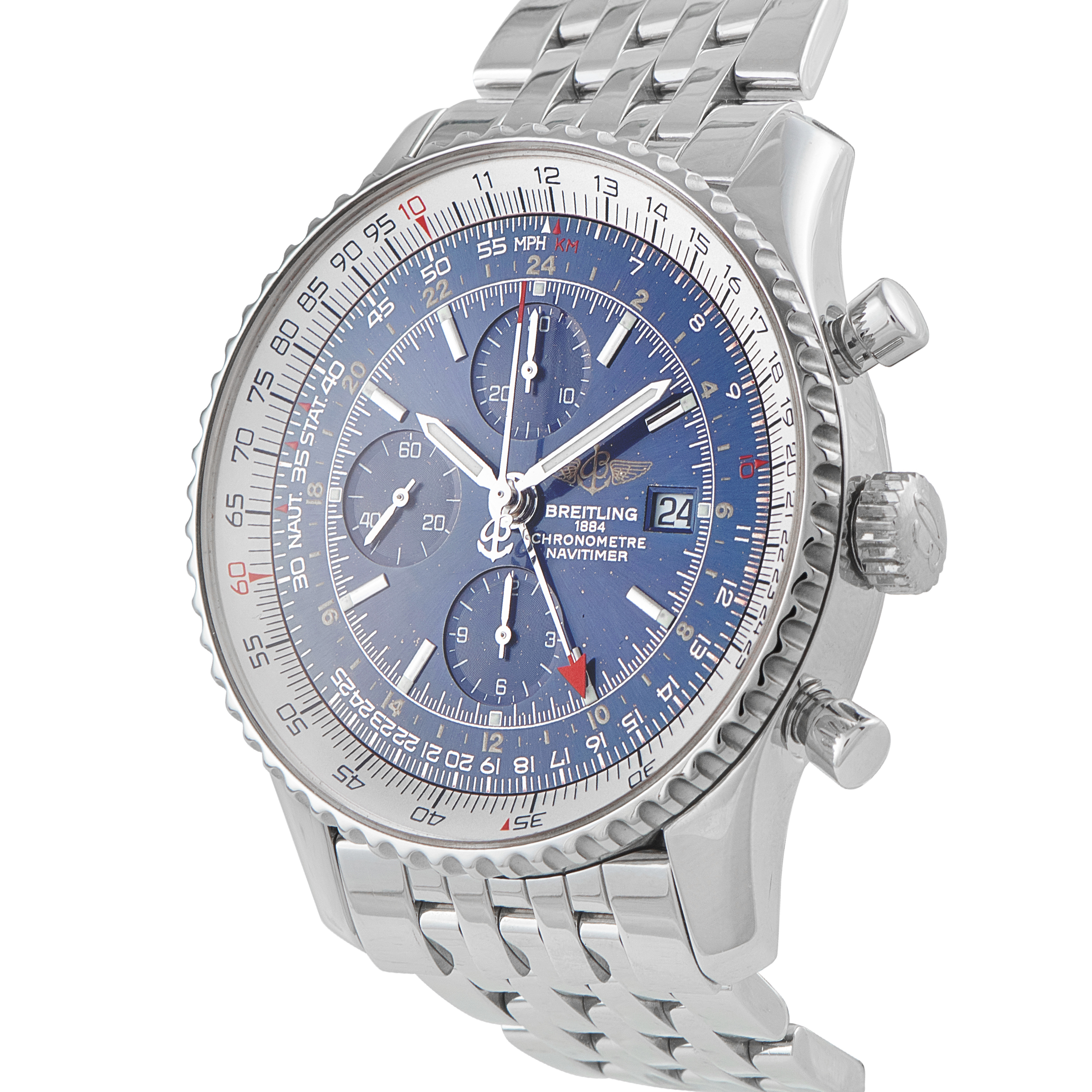 This pre-owned Breitling Navitimer World GMT Steel Watch A24322 comes with a gift box.