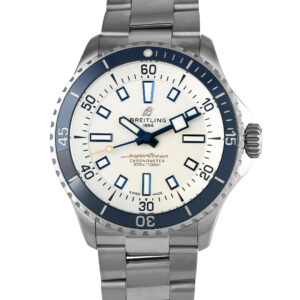 Functional in the deep sea and stylish on land, the Breitling Superocean Ref.A17375E71G1A1 is a watch that’s built to impress. It combines exceptional durability and legibility with refined aesthetics. The steel case measures 42mm in diameter and is worn on a stainless steel bracelet. Its white dial features blue-toned broad hands and oversized hour markers with Super-LumiNova for easy readability. Encircling the dial is a unidirectional bezel with a deep blue ceramic insert. The watch is water resistant to 300 m (1000 ft).