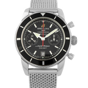 The Breitling Superocean Heritage Chronograph ref. A2337024 draws inspiration from the brand’s early dive watches while showcasing a contemporary profile. This model features a metallic black bezel encircling a “Volcano black” dial with bold markers and balanced chronograph counters, offering both clarity and character. The stainless steel case is paired with a polished Milanese mesh bracelet, lending distinctive texture and enduring comfort. Inside runs caliber 23 automatic movement, powering the time, date, and chronograph functions with dependable precision.