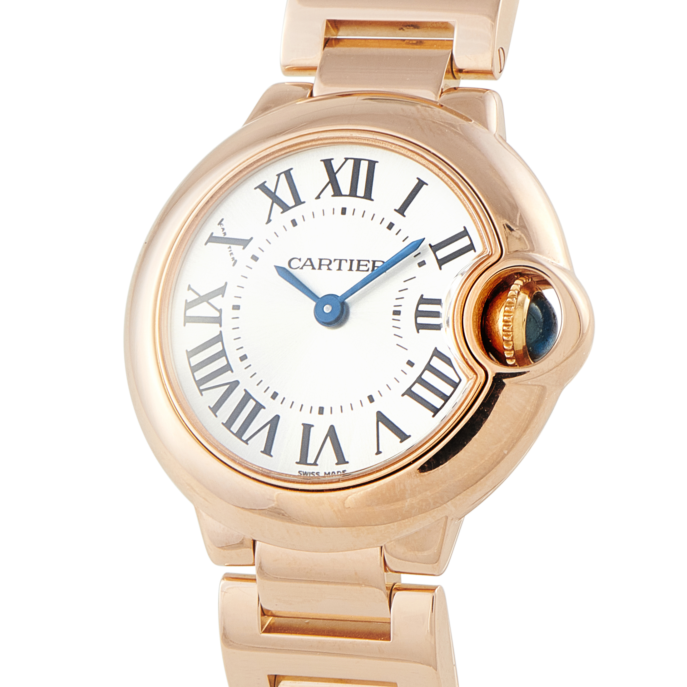 A gift box accompanies this pre-owned Cartier Ballon Bleu de Cartier 18K Rose Gold Watch W69002Z2.