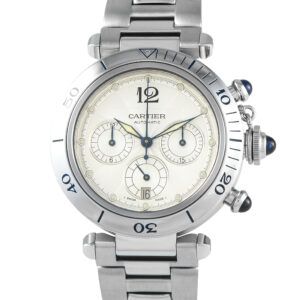 This pre-owned Cartier Pasha Seatimer Chronograph Watch W31030H3 comes with papers and the manufacturer’s box.