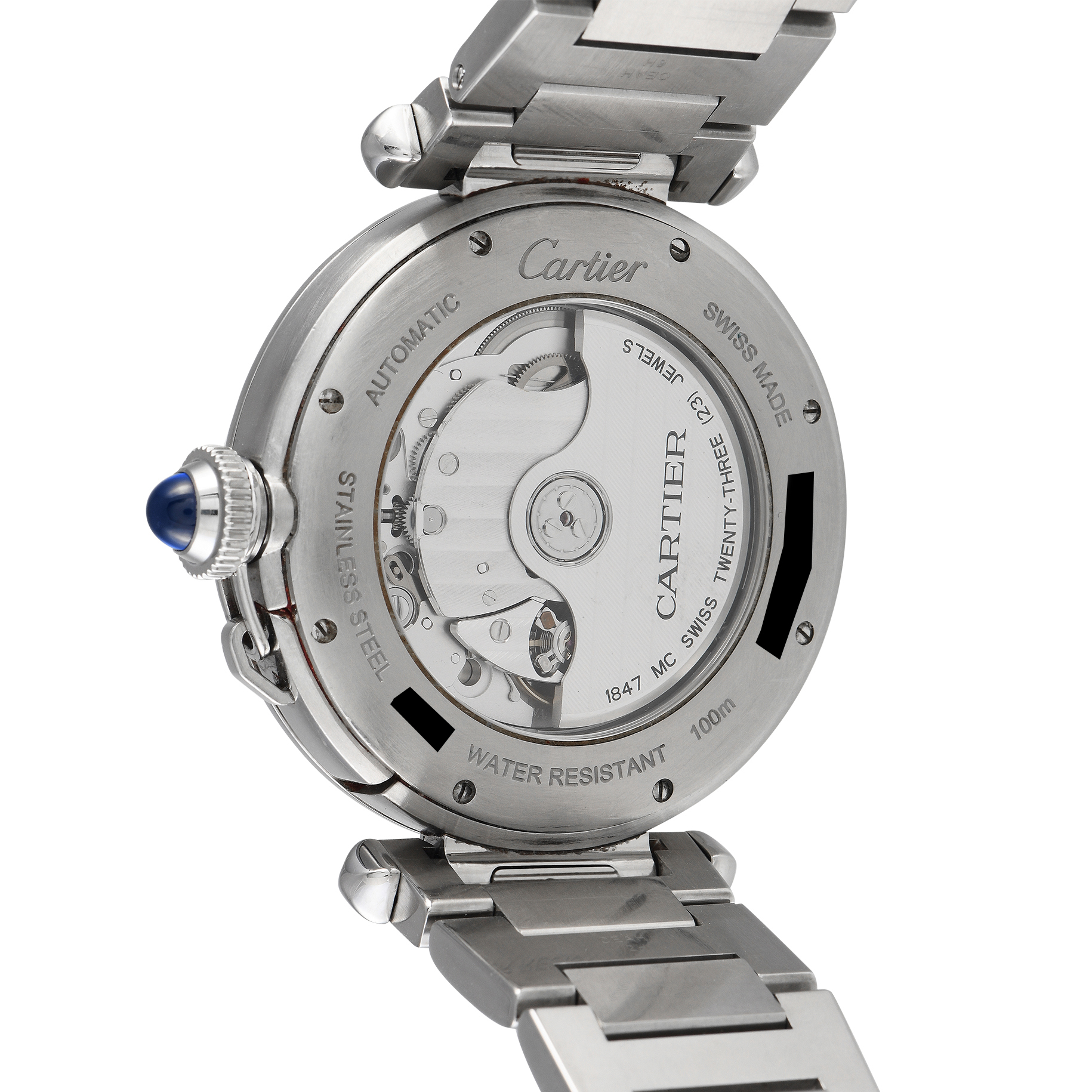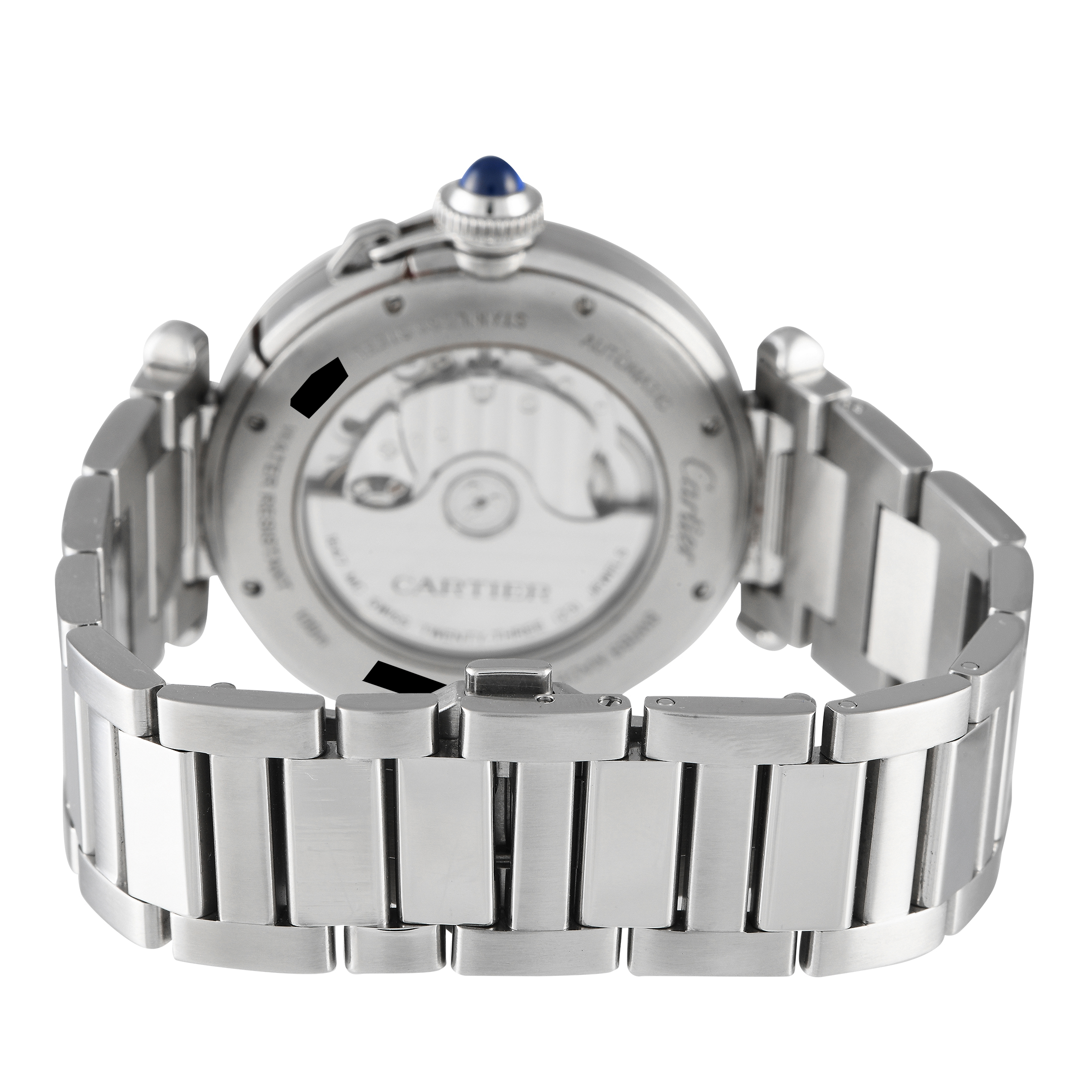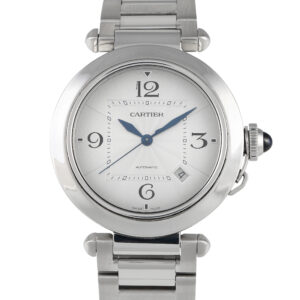 This pre-owned Cartier Pasha Steel Automatic Watch WSPA0009 comes with papers, additional leather strap, and the manufacturer’s box.