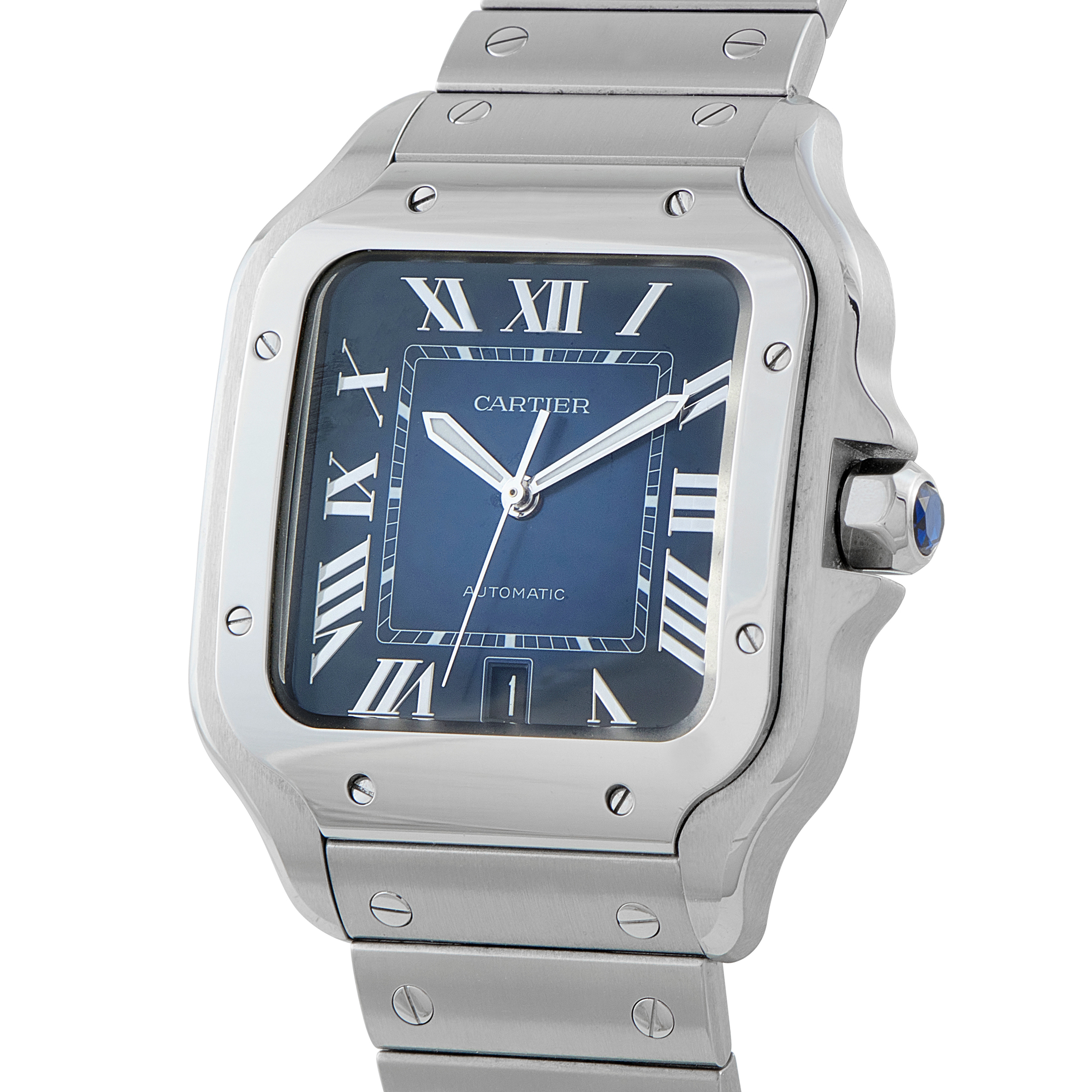 CartierSantos Large Blue Dial Steel Watch WSSA0030