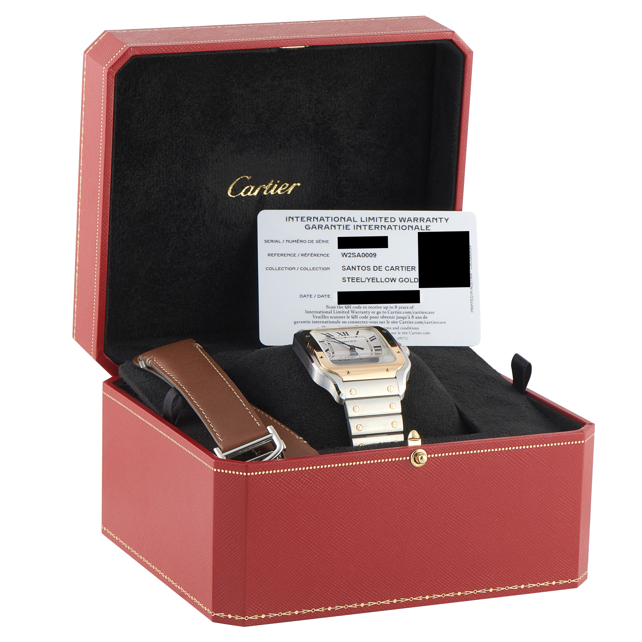 This unworn Cartier Santos Large Model Two Tone Watch W2SA0009 comes with the manufacturer’s box and papers.