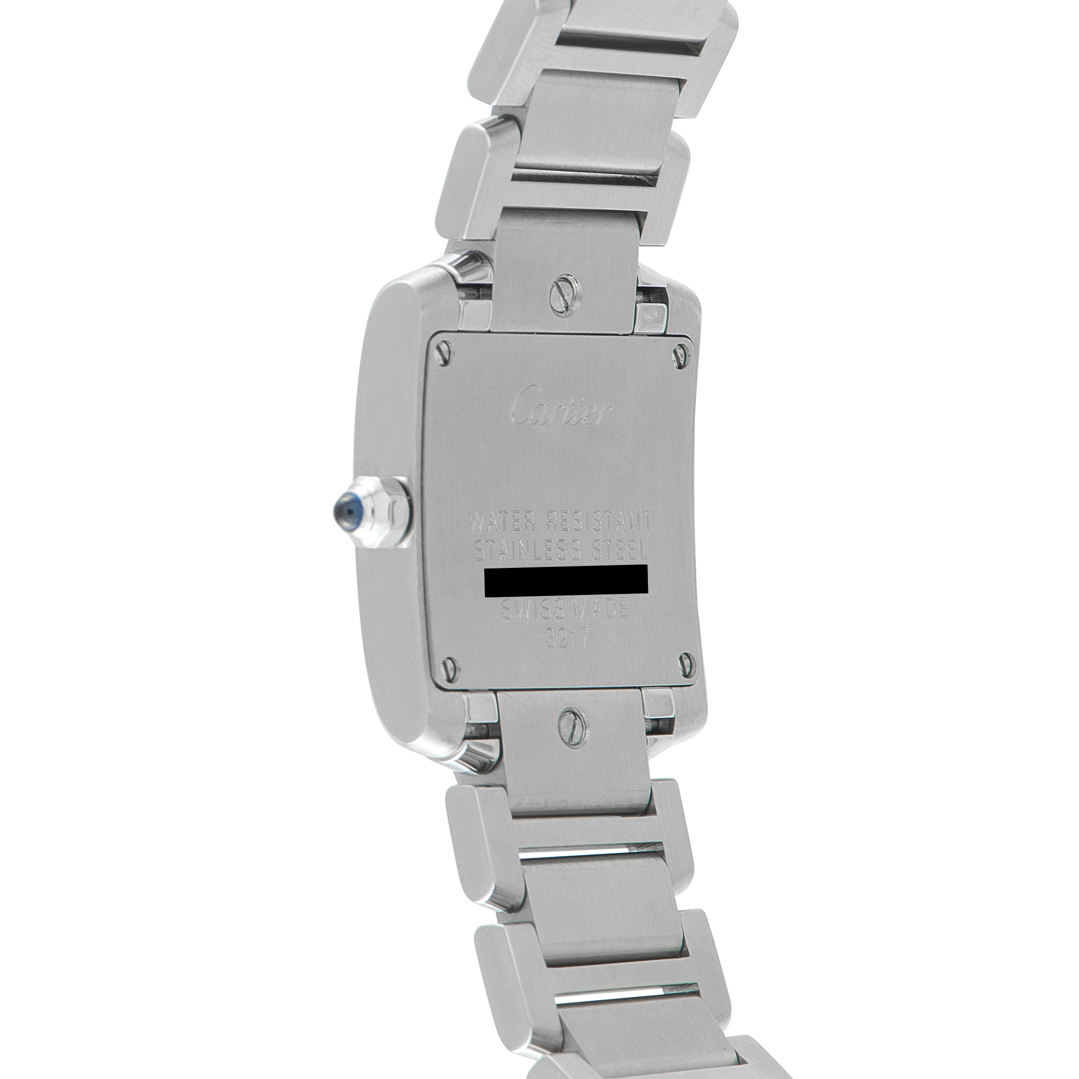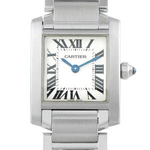 A gift box accompanies this pre-owned Cartier Tank Française Steel Ladies Watch W51008Q3.