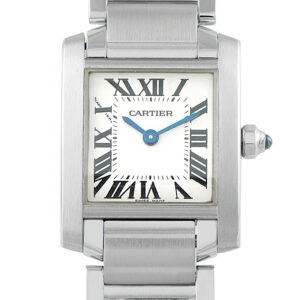 An essential piece of contemporary Parisian chic. Cartier’s Tank Française is a women’s watch designed with a sturdy and refined profile. It has a mid-sized 25mm x 30mm stainless steel case that flows seamlessly into the brick-link bracelet. A classic silvered dial hosts a pair of blue steel hands and the signature Roman numeral hour markers. This model is powered by a high-precision quartz movement for reliable daily wear and effortless maintenance.