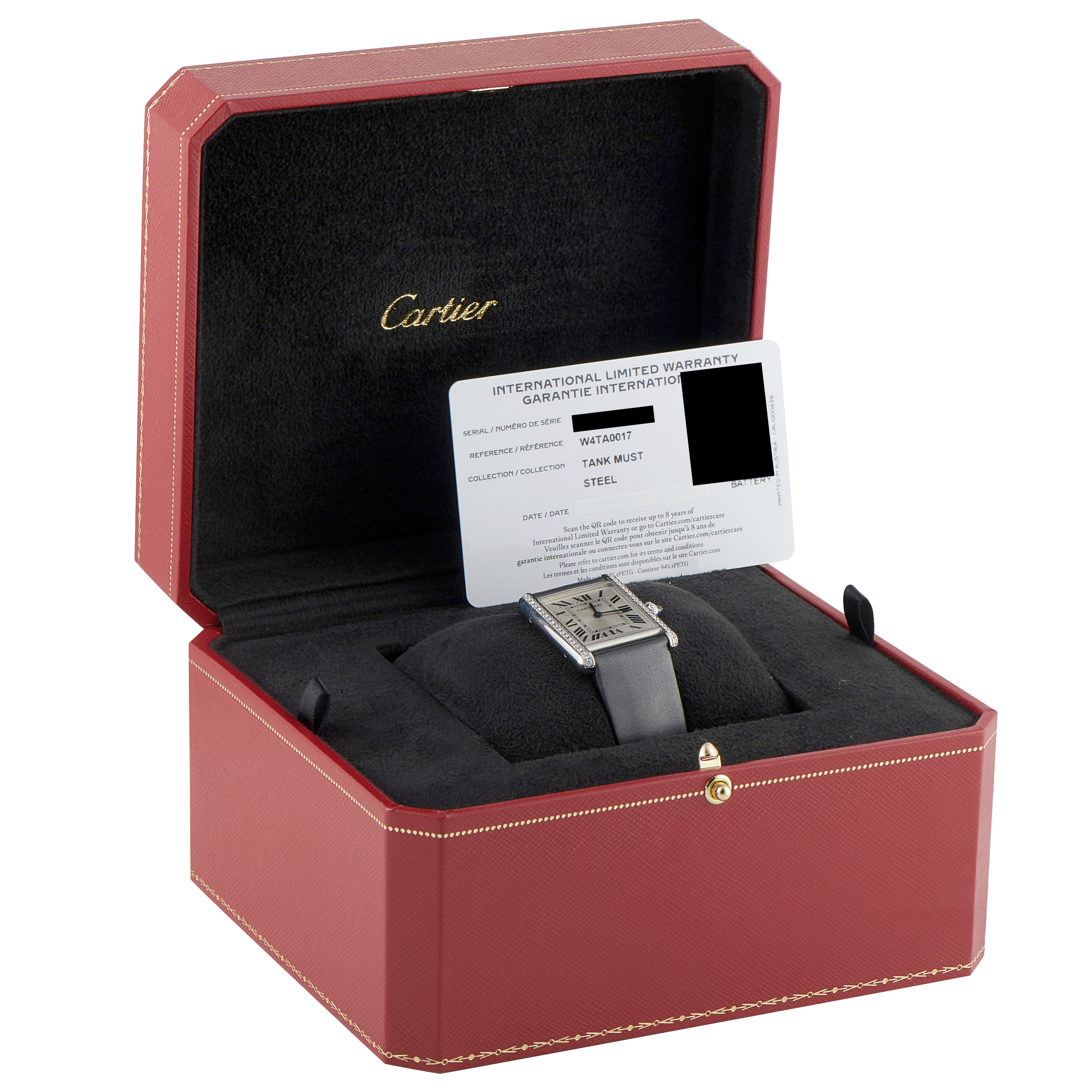 Offered unworn, this Cartier Tank Must Diamond and Steel Watch W4TA0017 comes with papers and the manufacturer’s box.