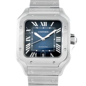 This is a pre-owned Cartier Santos Gradient Blue Dial Steel Watch WSSA0030. It comes with a gift box.