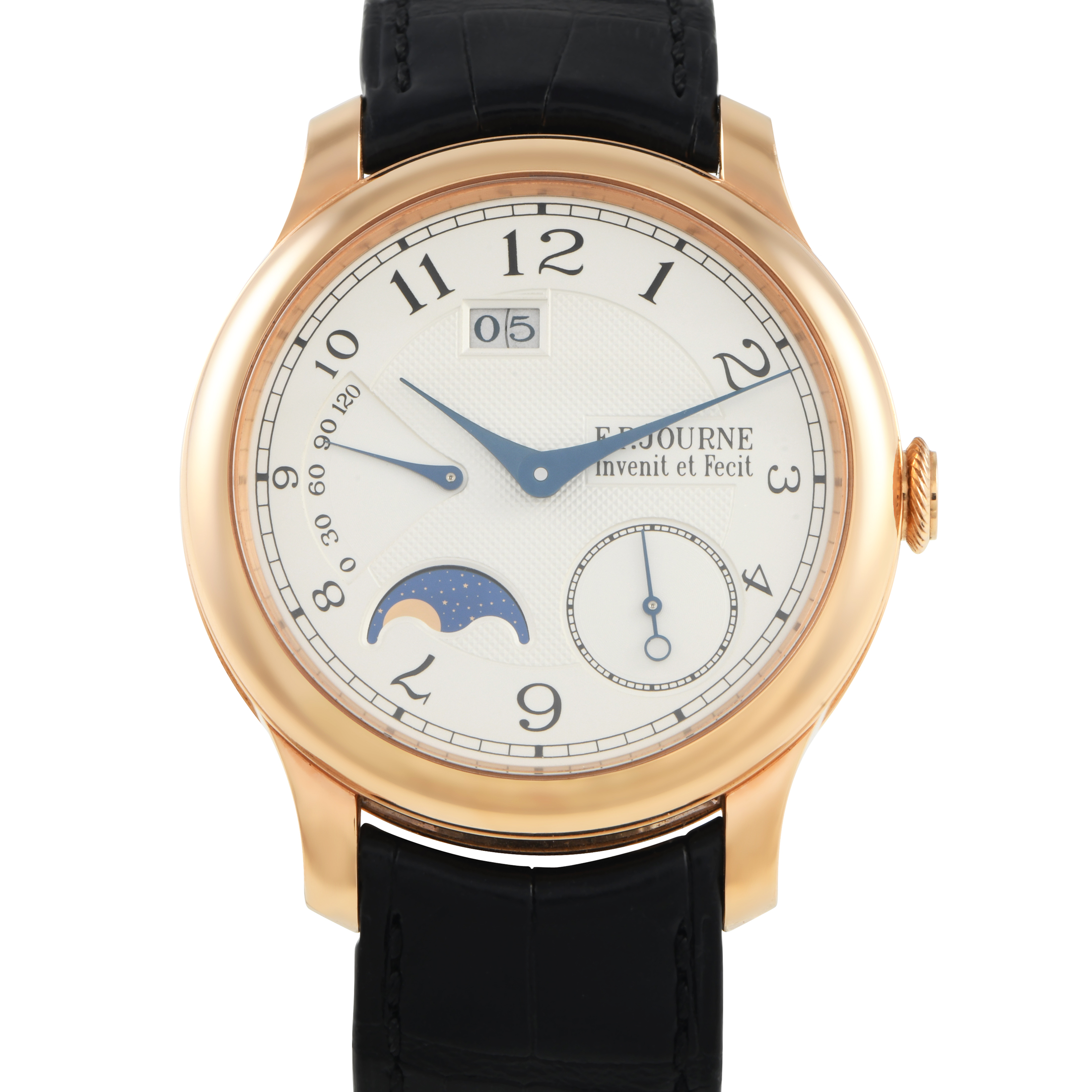 This pre-owned F.P. Journe Octa Automatique Lune 18K 6N Gold Watch is accompanied by the manufacturer’s box.