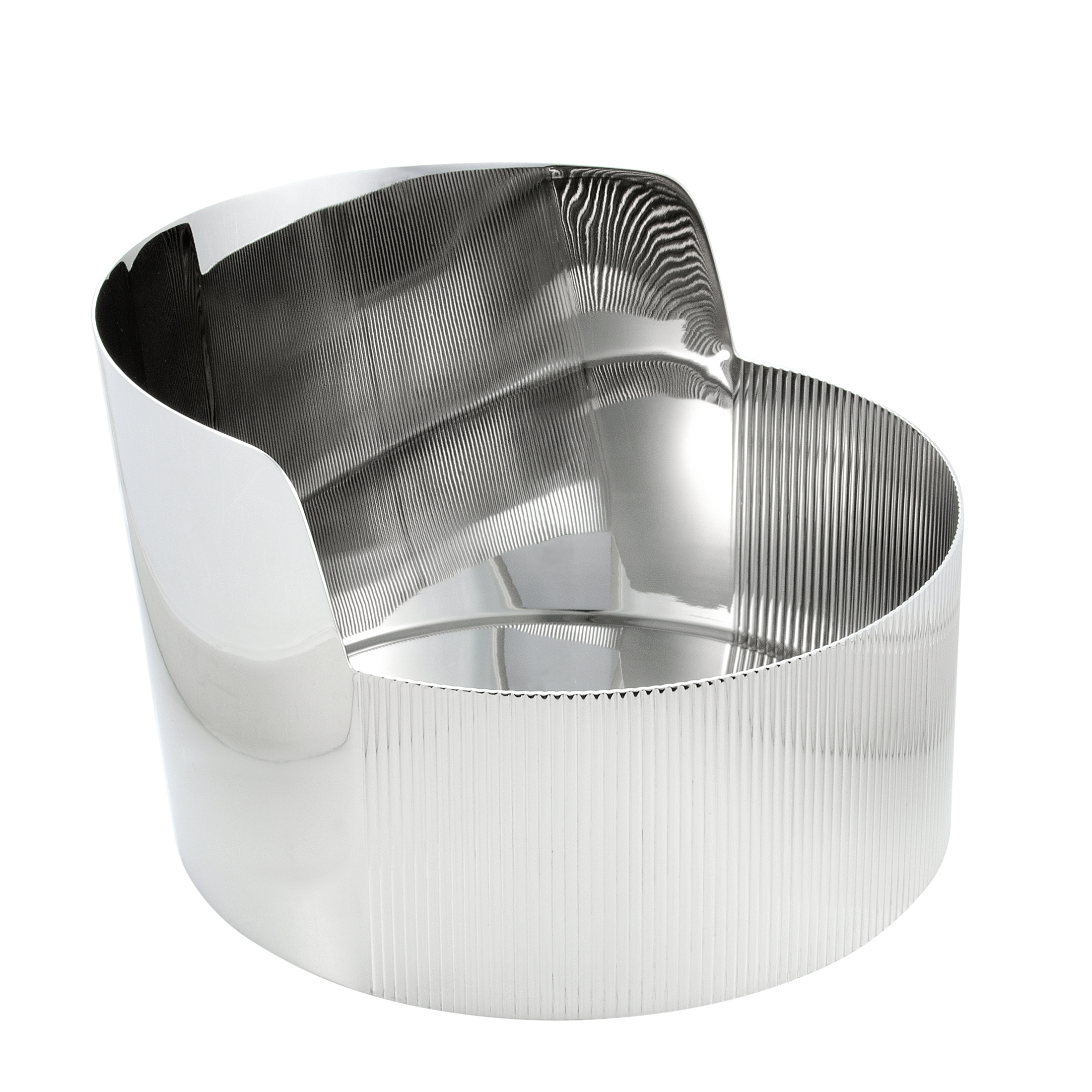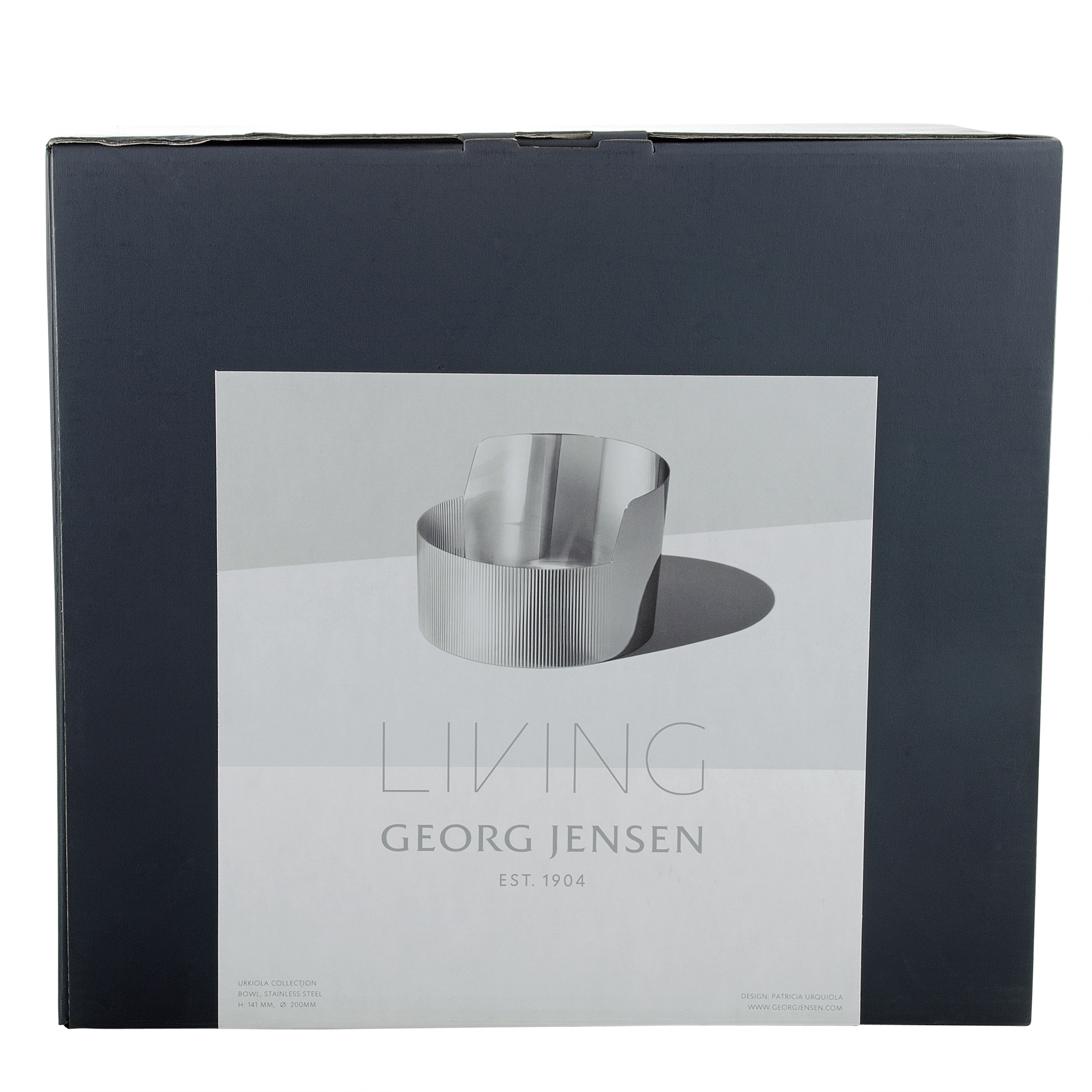 This exceptional Georg Jensen bowl is designed by Patricia Urquiola in a most exquisitely offbeat fashion, offering a splendidly contemporary look with sleek lines and refined appeal. The bowl is crafted from stainless steel, measuring 141 mm in height and 200 mm in diameter.
