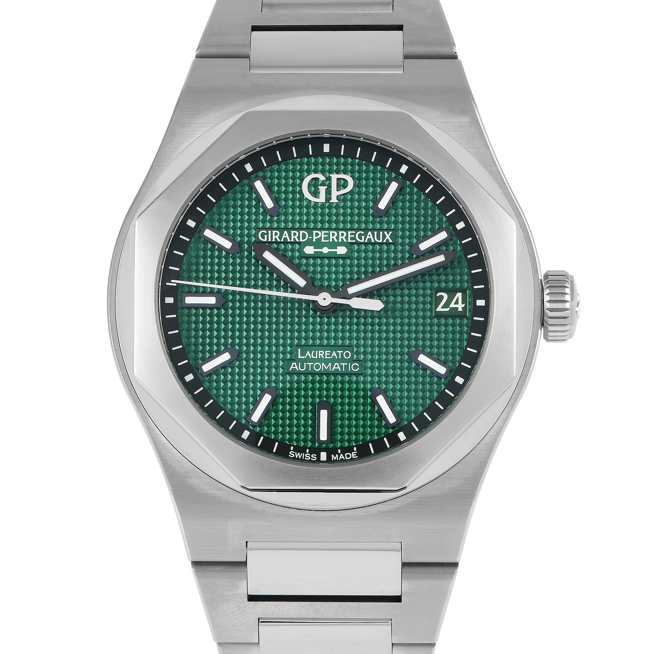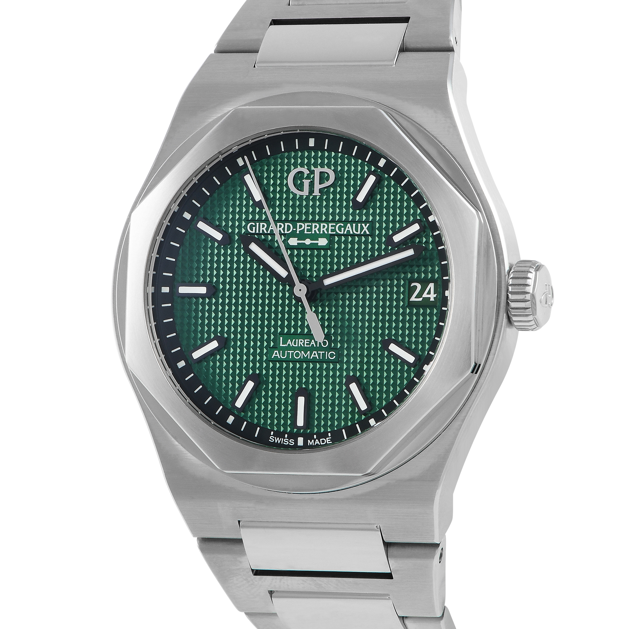 This pre-owned Girard Perregaux Laureato 42mm Green Dial Watch 81010-11-3153-1CM comes with a gift box.