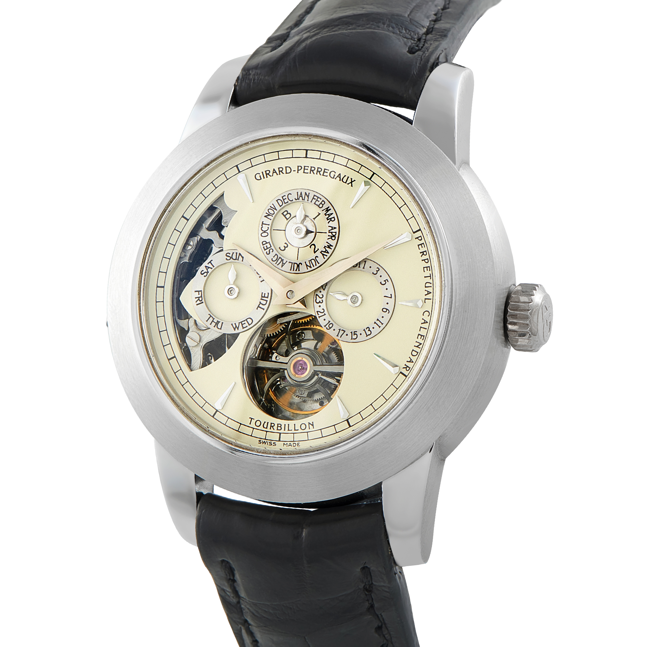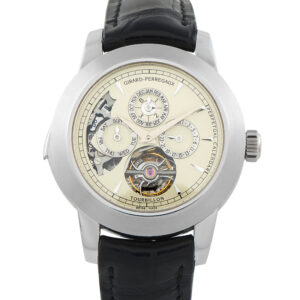 This pre-owned Girard-Perregaux Opera II Perpetual Calendar Tourbillon Platinum Watch 99741 includes a gift box.