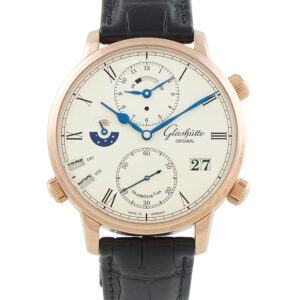 This unworn Glashutte Original Senator Cosmopolite 18K Rose Gold Watch W18902010561 comes with papers and a gift box.