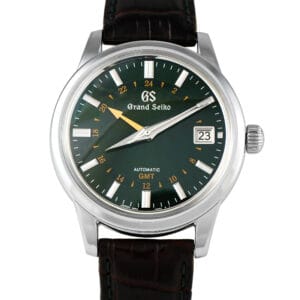 Grand Seiko, in collaboration with UK-based luxury watch retailer Watches of Switzerland, released the special edition SBGM241 in 2020. This is a stunning green-dialed dress watch boasting the Grand Seiko Mount Iwate dial pattern. The beautiful face of the watch, with sharp hands, faceted hour markers, a date window, and gold GMT hand and 24-hour markers, is encased in an exquisitely finished Zaratsu-polished stainless steel. Visible from the sapphire caseback is the Caliber 9S66 automatic movement that powers the watch, offering 72 hours of power reserve.