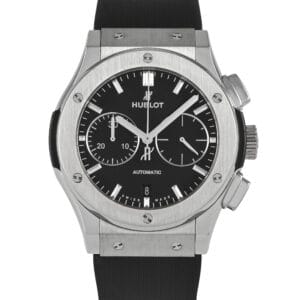 This is a pre-owned Hublot Classic Fusion Chronograph Titanium Watch 521.NX.1171.LR. It comes with papers and the manufacturer’s box.