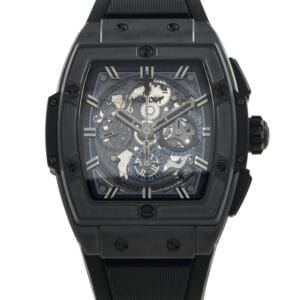 This pre-owned Hublot Spirit of Big Bang Chronograph All Black Limited Edition Watch 641.CI.0110.RX comes with manufacturer’s papers and box.