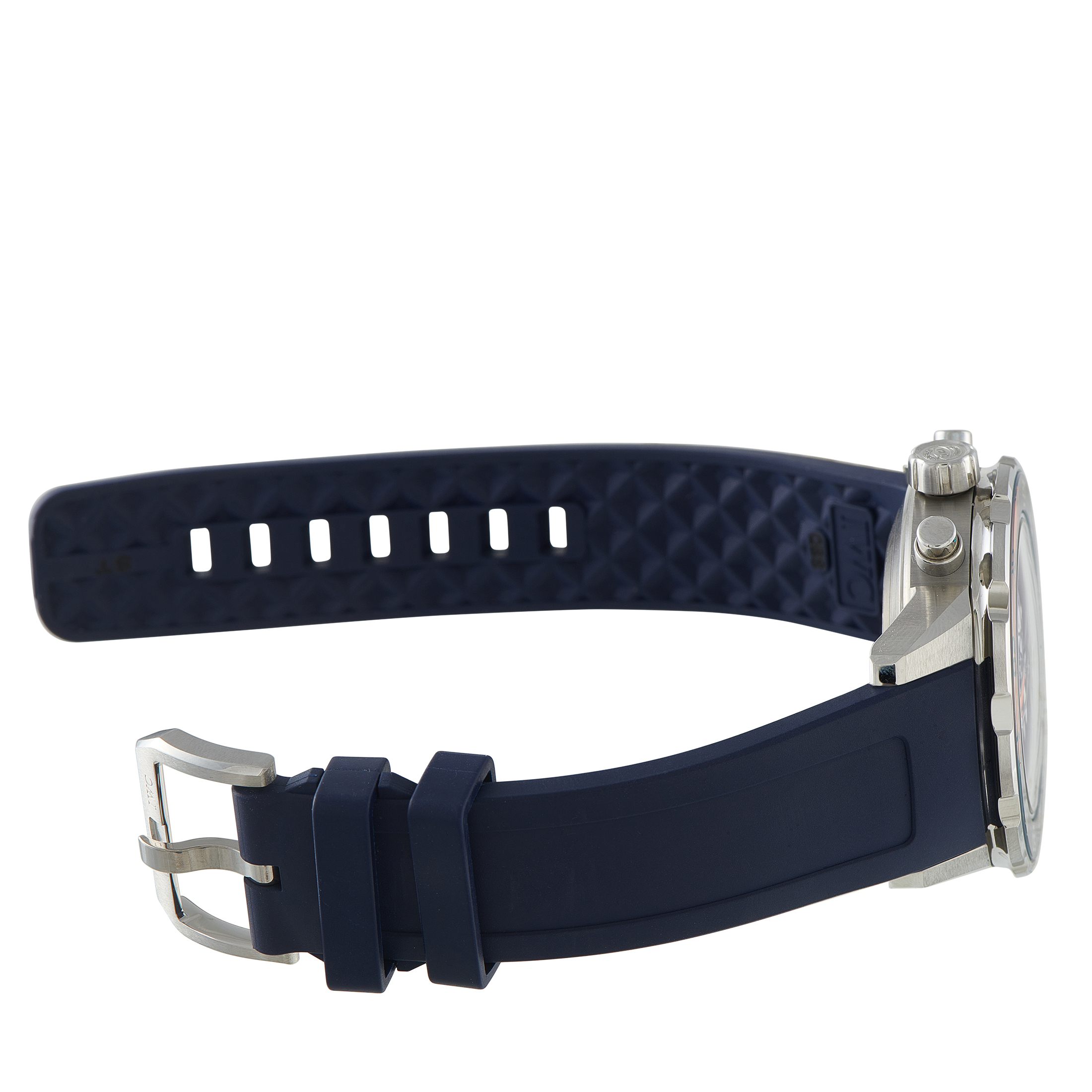 Designed as a true dive watch, the IWC Aquatimer Chronograph pairs a robust steel case with a comfortable rubber strap, reinforcing its purpose as a tool intended for water use and extended wear. The blue galvanic dial emphasizes readability through white hour markers and bold hands, with orange accents to aid orientation in low-light conditions. The layout separates the chronograph and day-date functions clearly, supporting use both underwater and on land. The automatic Caliber 79320 underpins the watch with dependable operation and service-proven architecture.