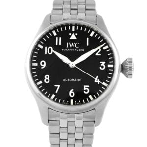 This is a pre-owned IWC Big Pilot’s 43 Black Dial Steel Watch IW329301. It is accompanied by the box and papers.
