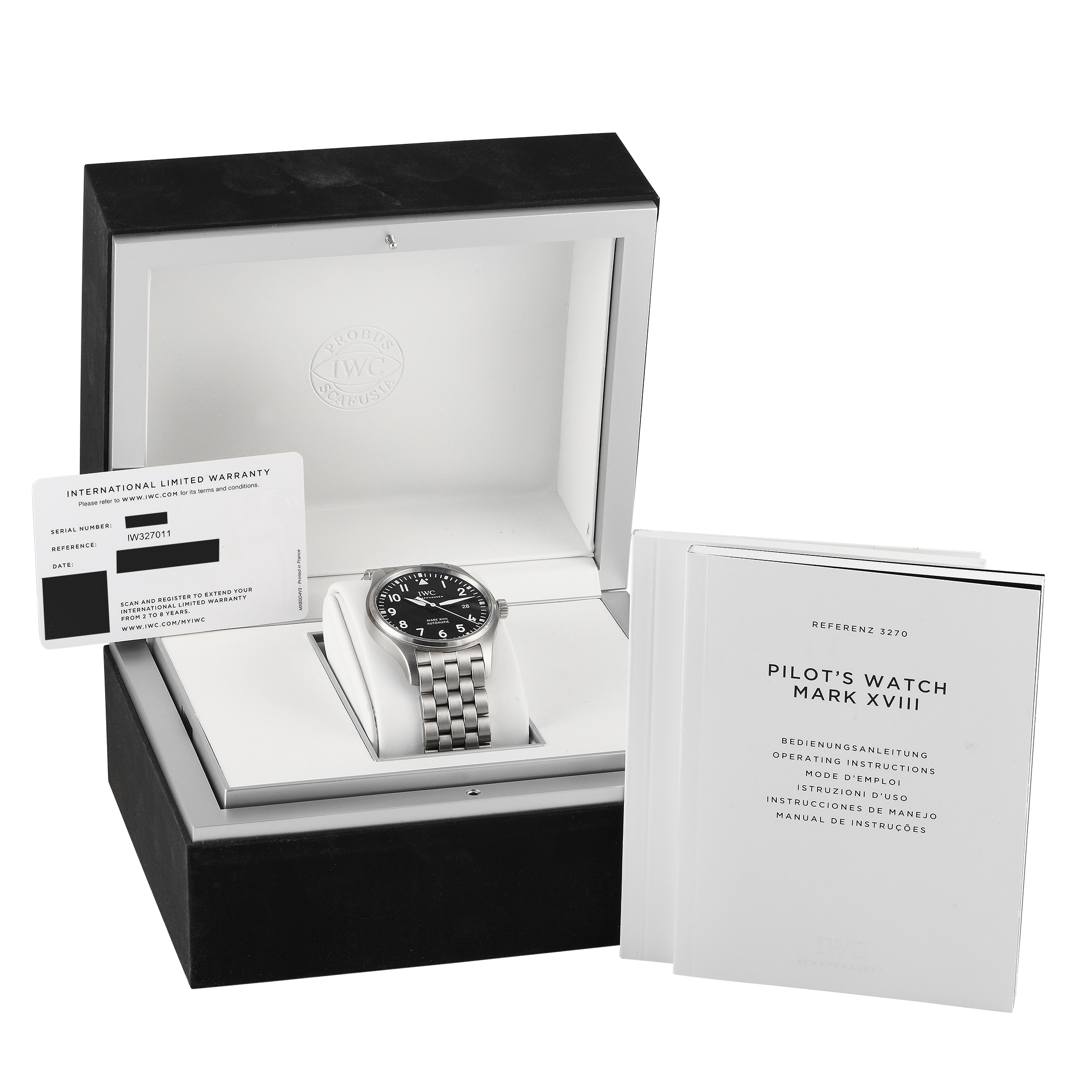 This pre-owned IWC Mark VXIII Pilot’s Watch IW327011 is accompanied by papers and the manufacturer’s box.