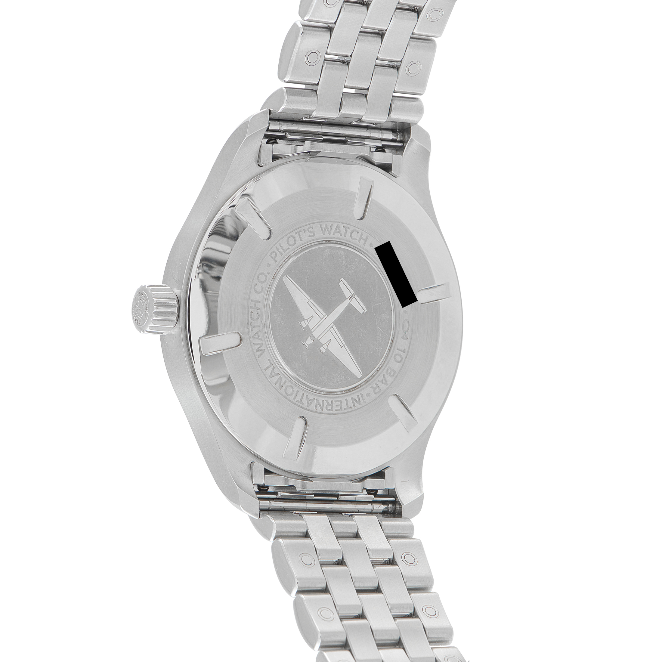Clear timekeeping. Durable Construction. Aviation heritage. This reference advances the Mark series without altering its mandate. Its 40mm steel case with a thin bezel is compact, wears flat, and balanced. The matte blue dial carries white Arabic numerals that stand upright and deliberate. Luminous coating on the hands and markers burns bright and even for immediate clarity in darkness. A date window at three integrates cleanly. Inside runs the in-house caliber 32111, an automatic movement with 120-hour power reserve from its twin-barrel system. Water resistance is rated to 100 meters.