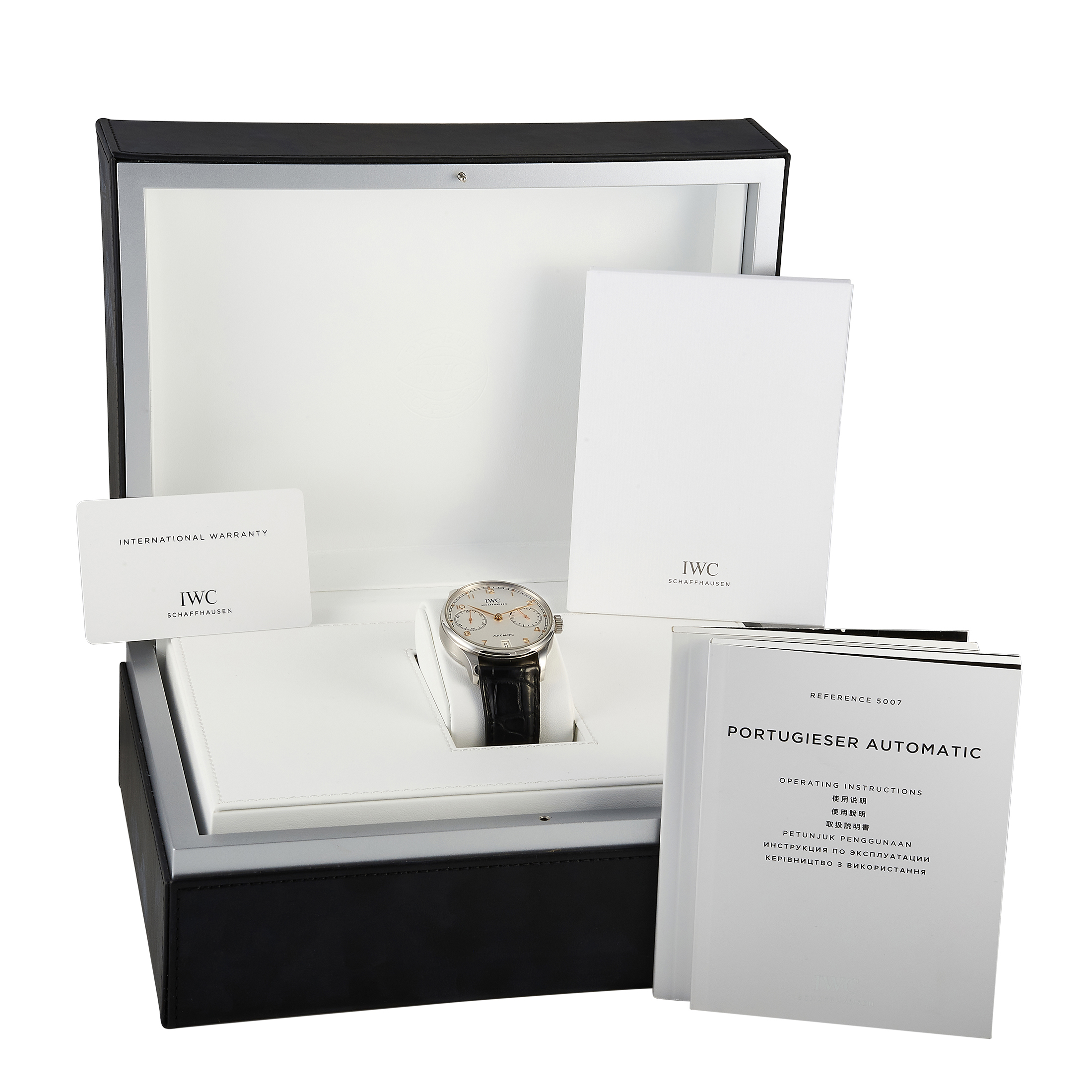 This pre-owned IWC Portugieser Automatic Watch IW500704 comes with papers and the manufacturer’s box.