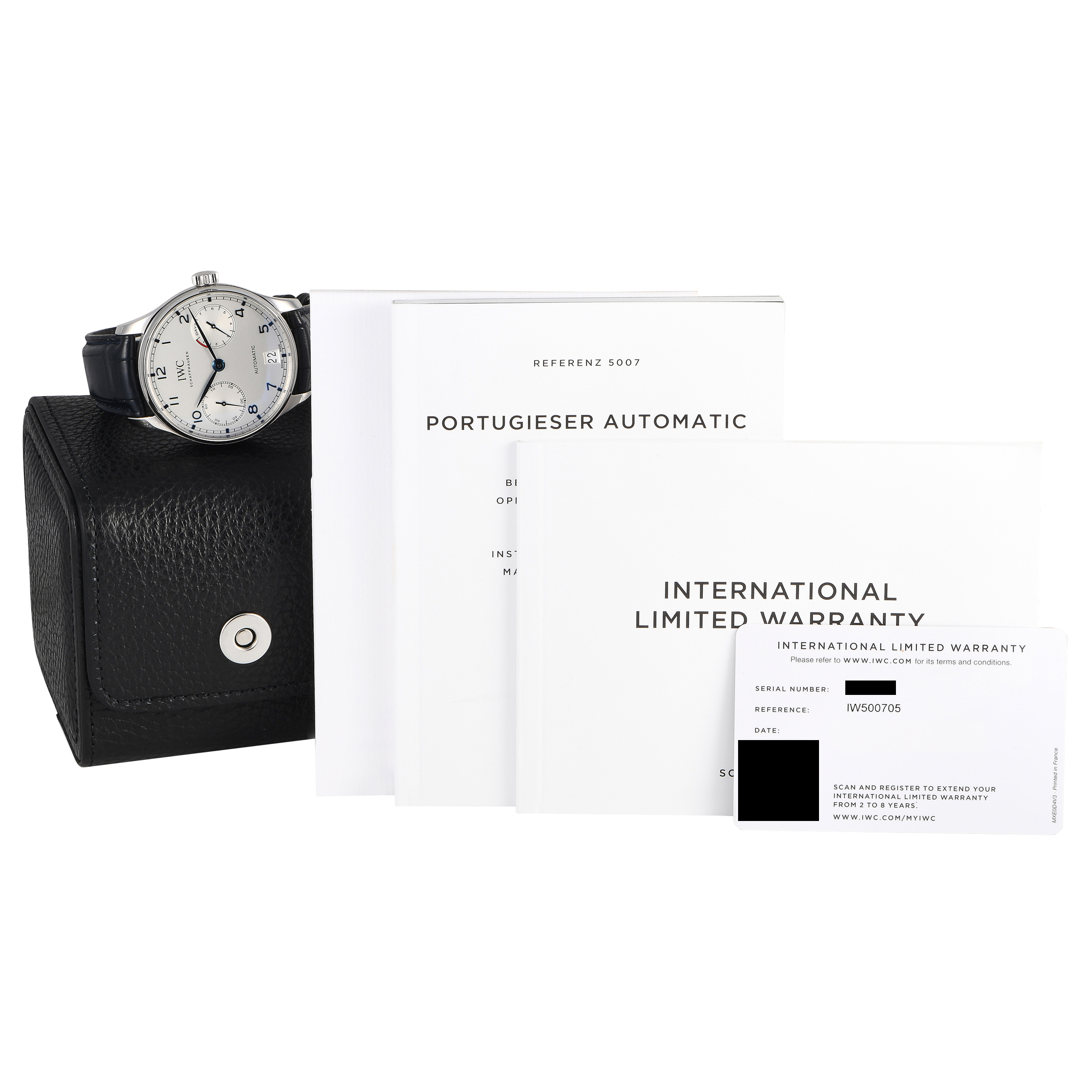 This pre-owned IWC Portugieser Automatic Watch IW500705 comes with papers and the manufacturer’s box.