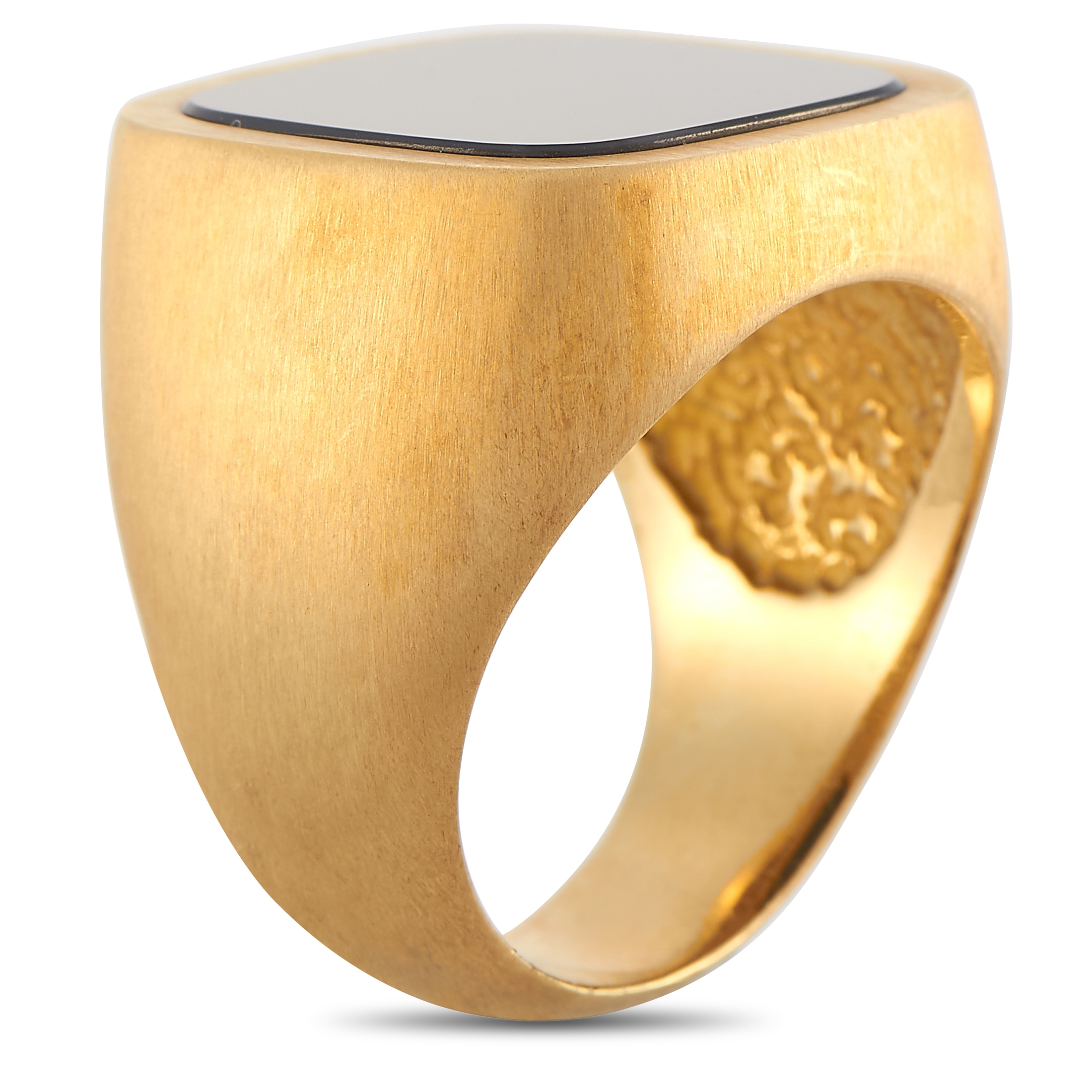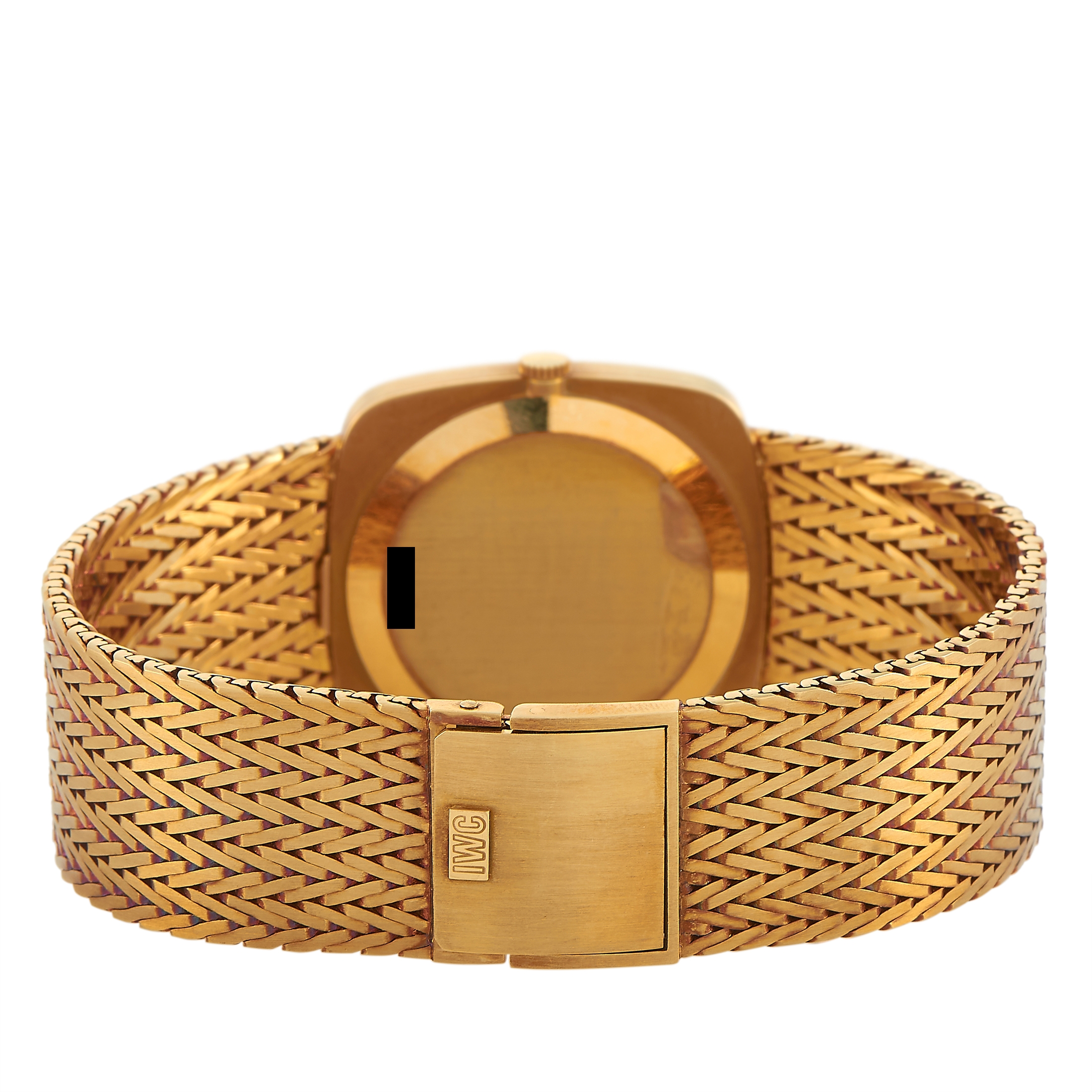 Together with the watch is a pair of square cufflinks in yellow gold with black face and an 18K yellow gold square ring with a black center. This IWC Khanjar Set is offered in pre-owned condition inclusive of the original manufacturer’s box.