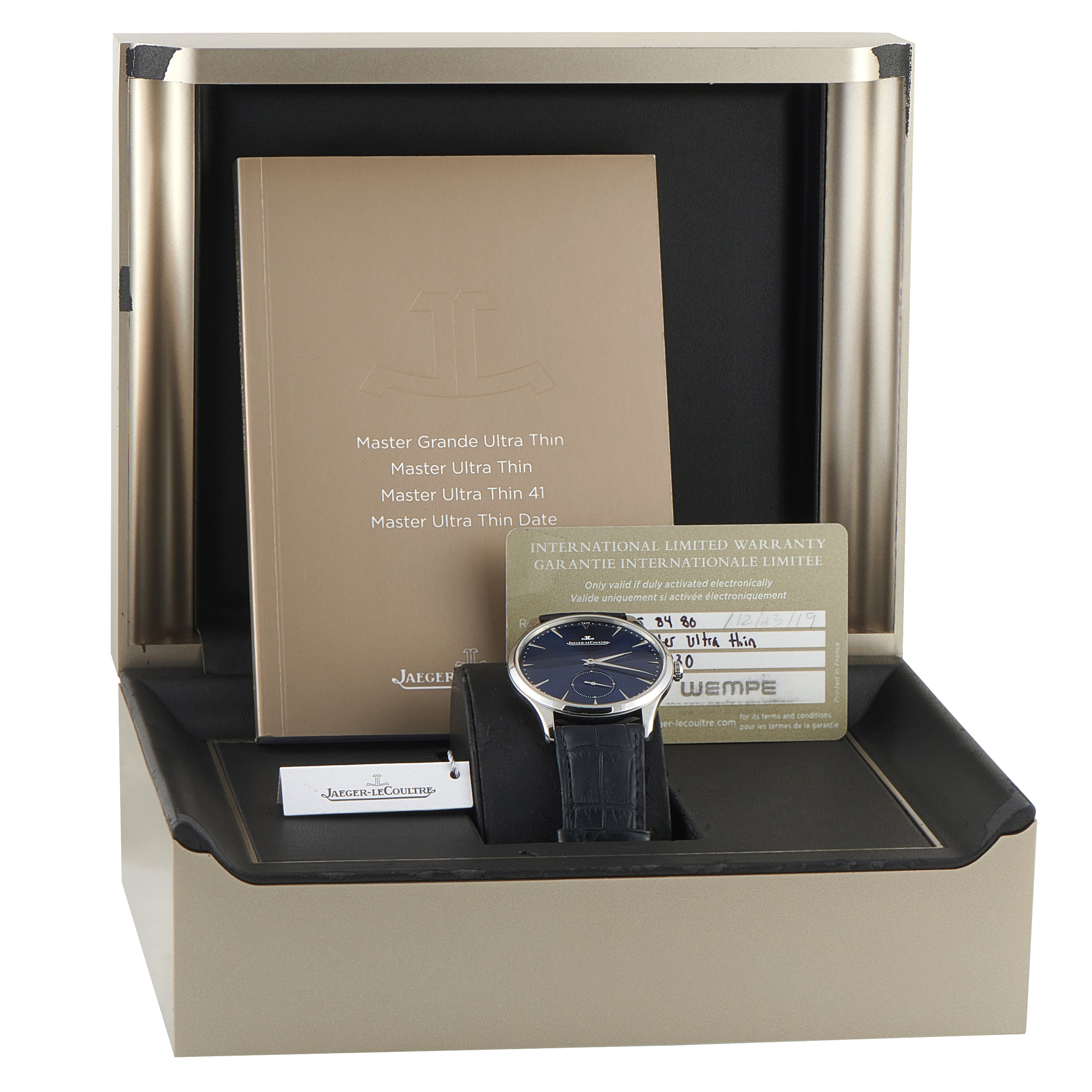 This pre-owned Jaeger-LeCoultre Master Ultra Thin Small Seconds Watch Q1358480 comes with papers and the manufacturer’s box.