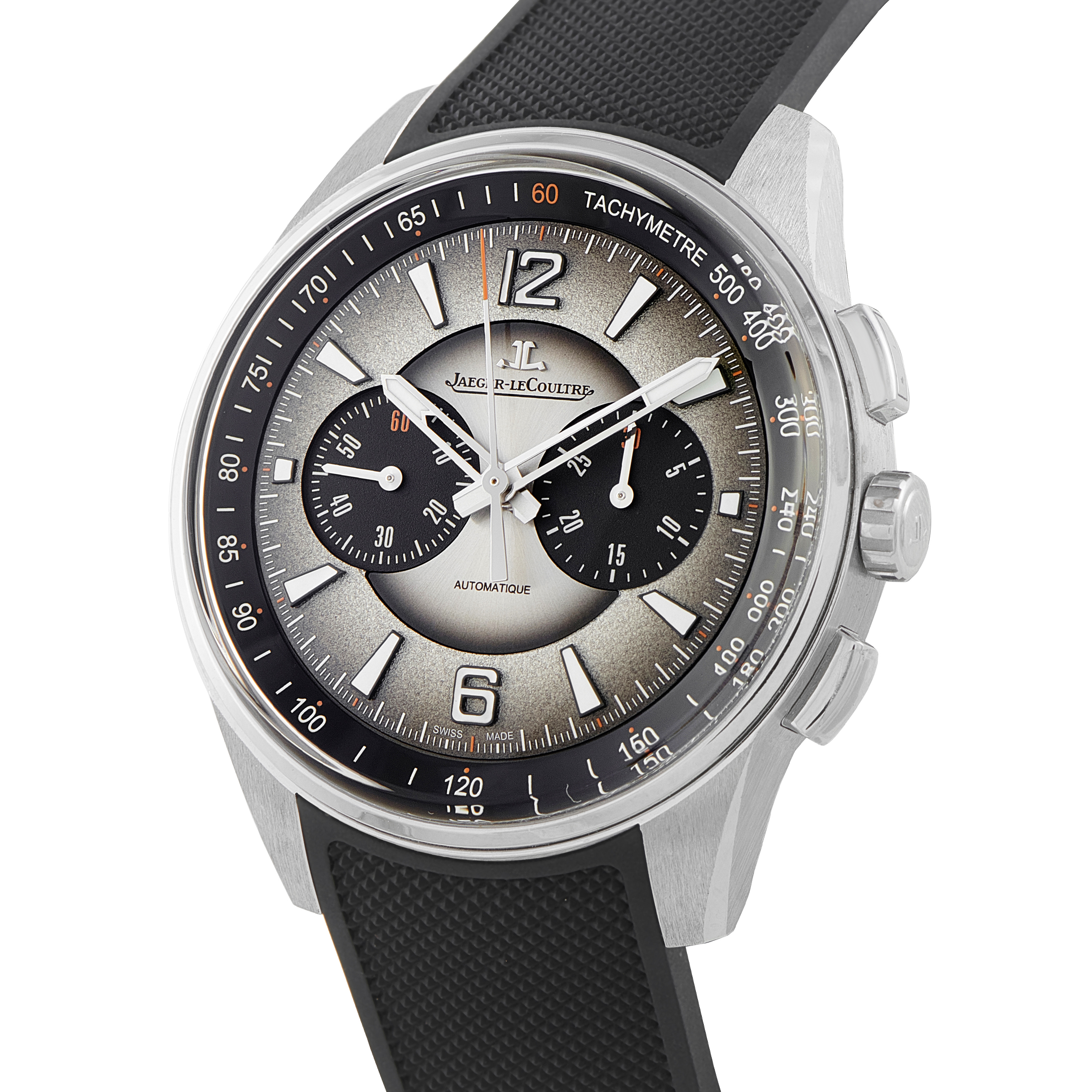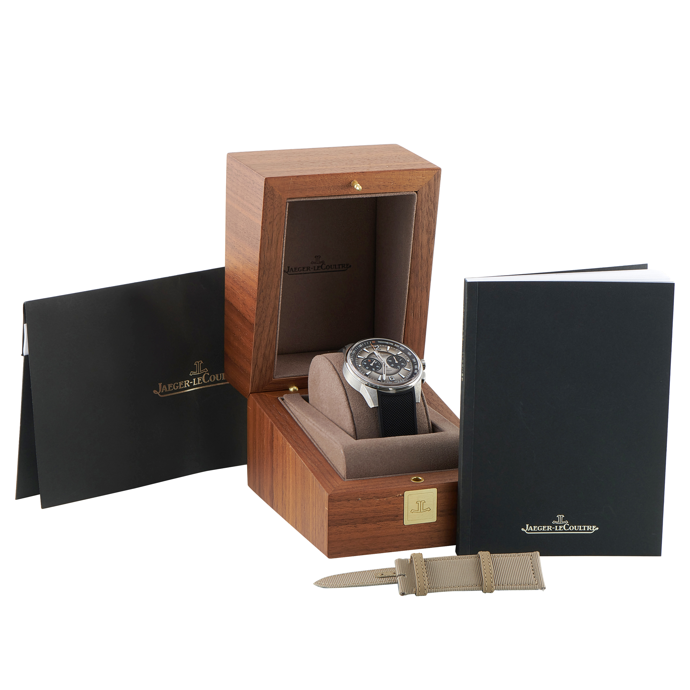 This is an unworn Jaeger-LeCoultre Polaris Chronograph Automatic Steel Watch Q902843J. It comes complete with papers, a secondary strap, and the manufacturer’s wooden presentation box.