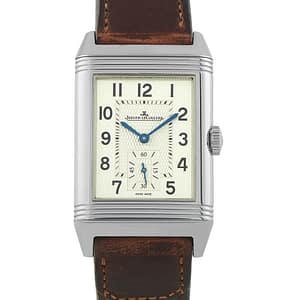 This is a pre-owned Jaeger-LeCoultre Reverso Classic Duoface Small Seconds Steel Watch Q3848422. It comes with papers and a gift box.