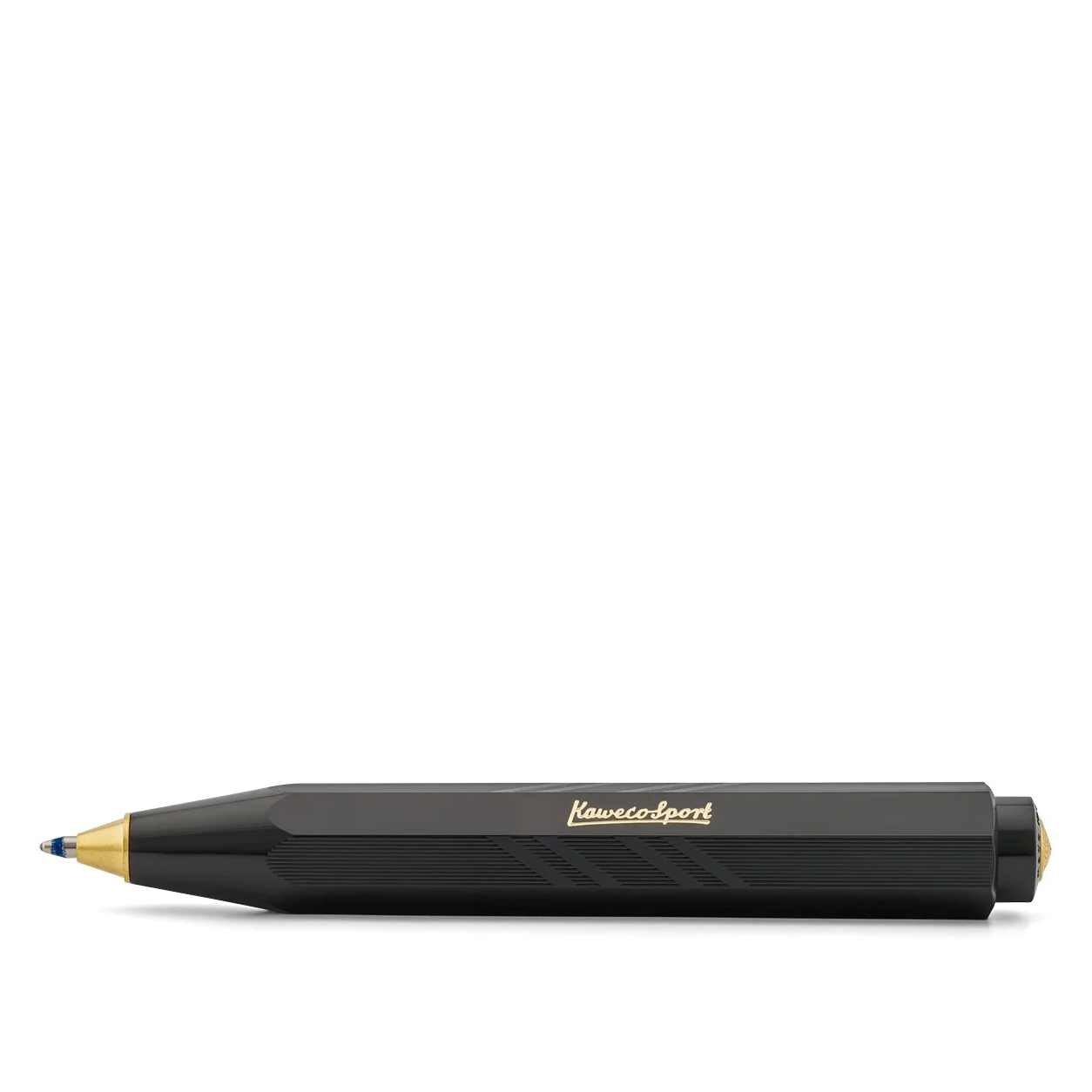 This Kaweco Classic Sport ballpoint pen in black guilloche features a metal knock button on top of the pen which extends the pen tip. This compact pen is ideal for carrying in your pocket for everyday needs.