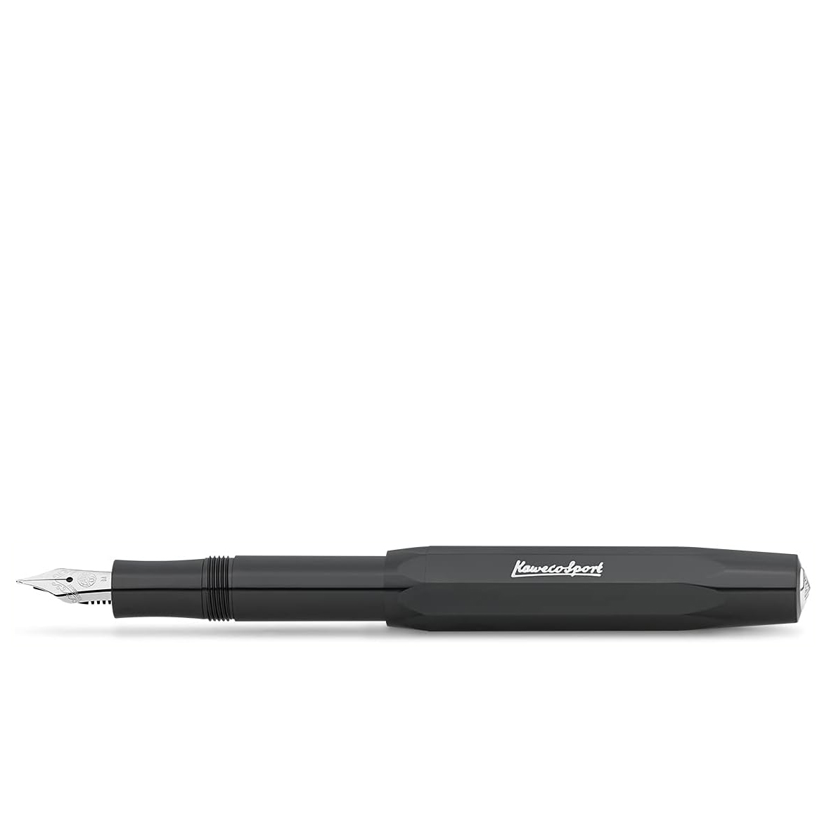 This Kaweco Skyline Sport Fountain Pen in black has a stainless steel broad nib.