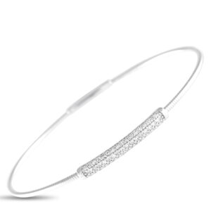 This elegant, understated 18K White Gold bangle bracelet is an essential piece for anyone who wants to add a touch of luxury to every day. Sleek and decidedly sophisticated, this 7.40” long bracelet includes a series of sparkling diamonds at the center that total 0.50 carats.