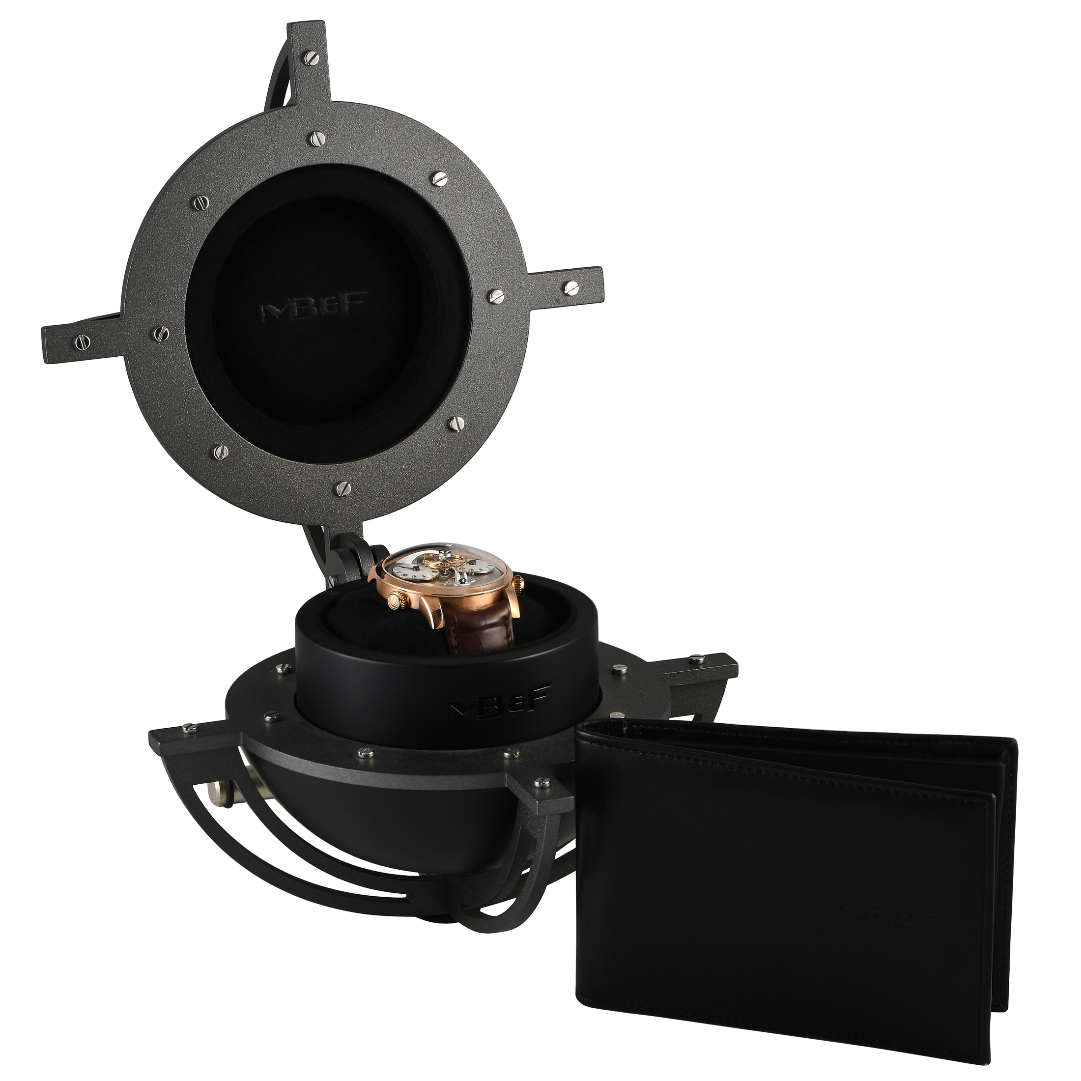 This pre-owned MB&F LM1 Legacy Machine No.1 Rose Gold Watch LM1-0100-01 is accompanied by papers and the manufacturer’s box.