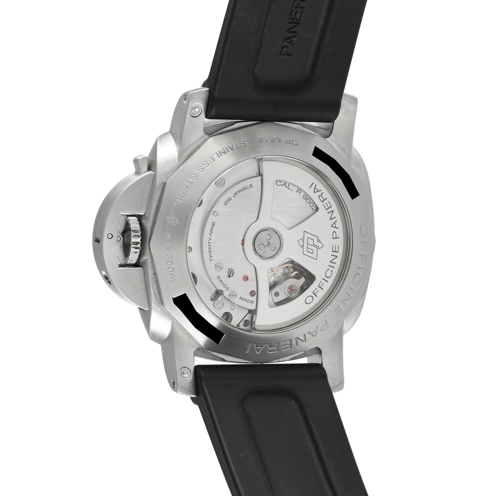 A watch that exudes style and promises comfort, versatility, and reliability. The Panerai PAM 321 prides itself on its impressive day and night legibility. It has a sandwich dial where a black top layer with numeral cut-outs is laid onto a bottom layer with luminescent material. The dial is protected by a domed sapphire crystal. The watch also boasts a 44mm-wide cushion case crafted from a solid block of stainless steel and fitted with Panerai’s signature half-crescent crown guard. The watch is driven by the in-house P.9002 automatic movement. This COSC-certified movement has a GMT function and a 3-day power reserve.