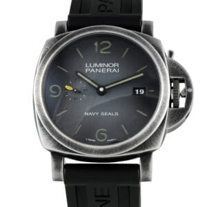 This is an unworn Officine Panerai Luminor Marina Navy SEALs Watch PAM01412. It comes complete with papers and the manufacturer’s box.