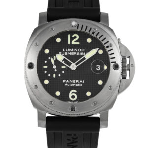 This pre-owned Officine Panerai Luminor Submersible Titanium Watch PAM00025 comes with a gift box.