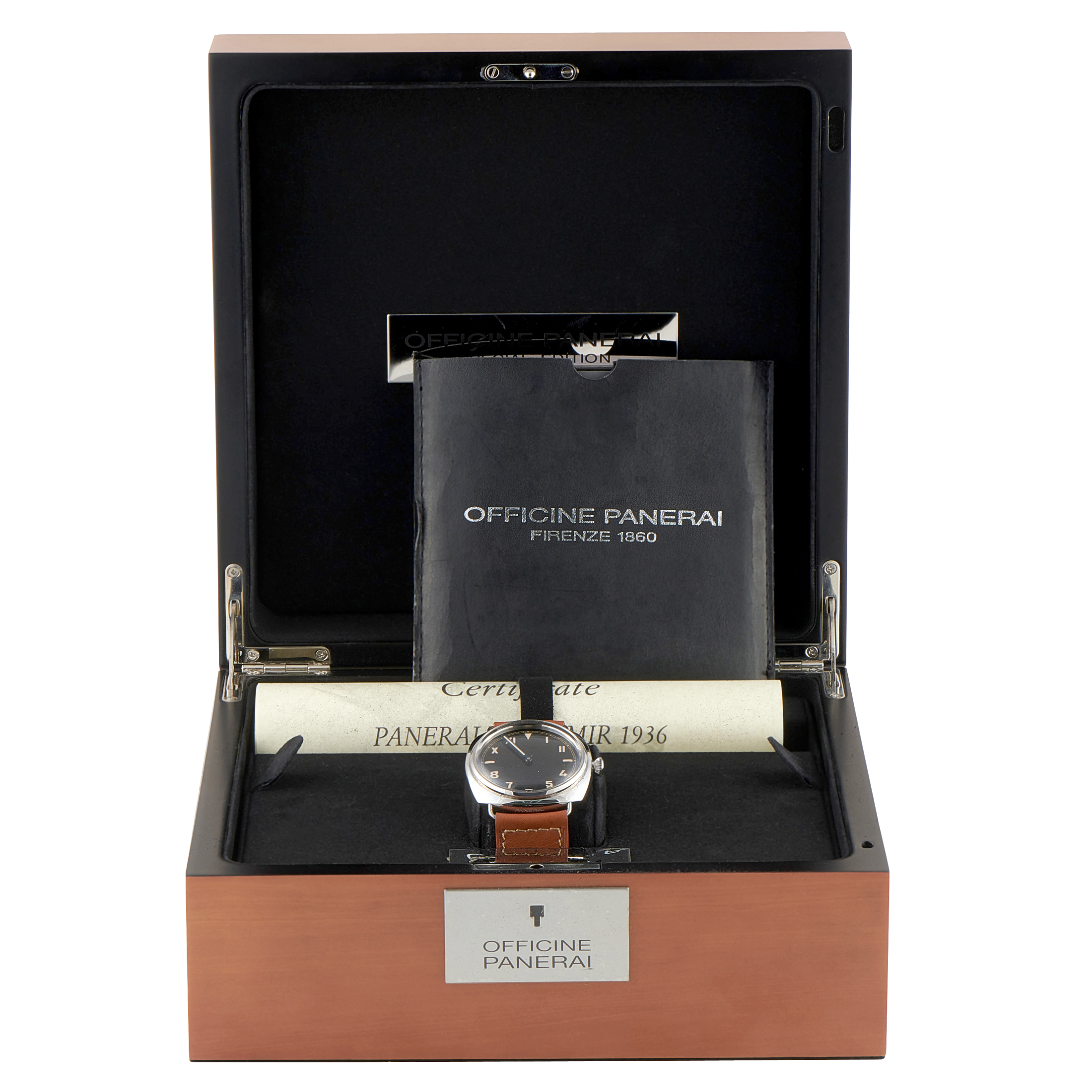 This is a pre-owned Officine Panerai Radimoir 1936 California Special Edition Watch PAM00249. It comes with papers, manual wallet, and the manufacturer’s box.