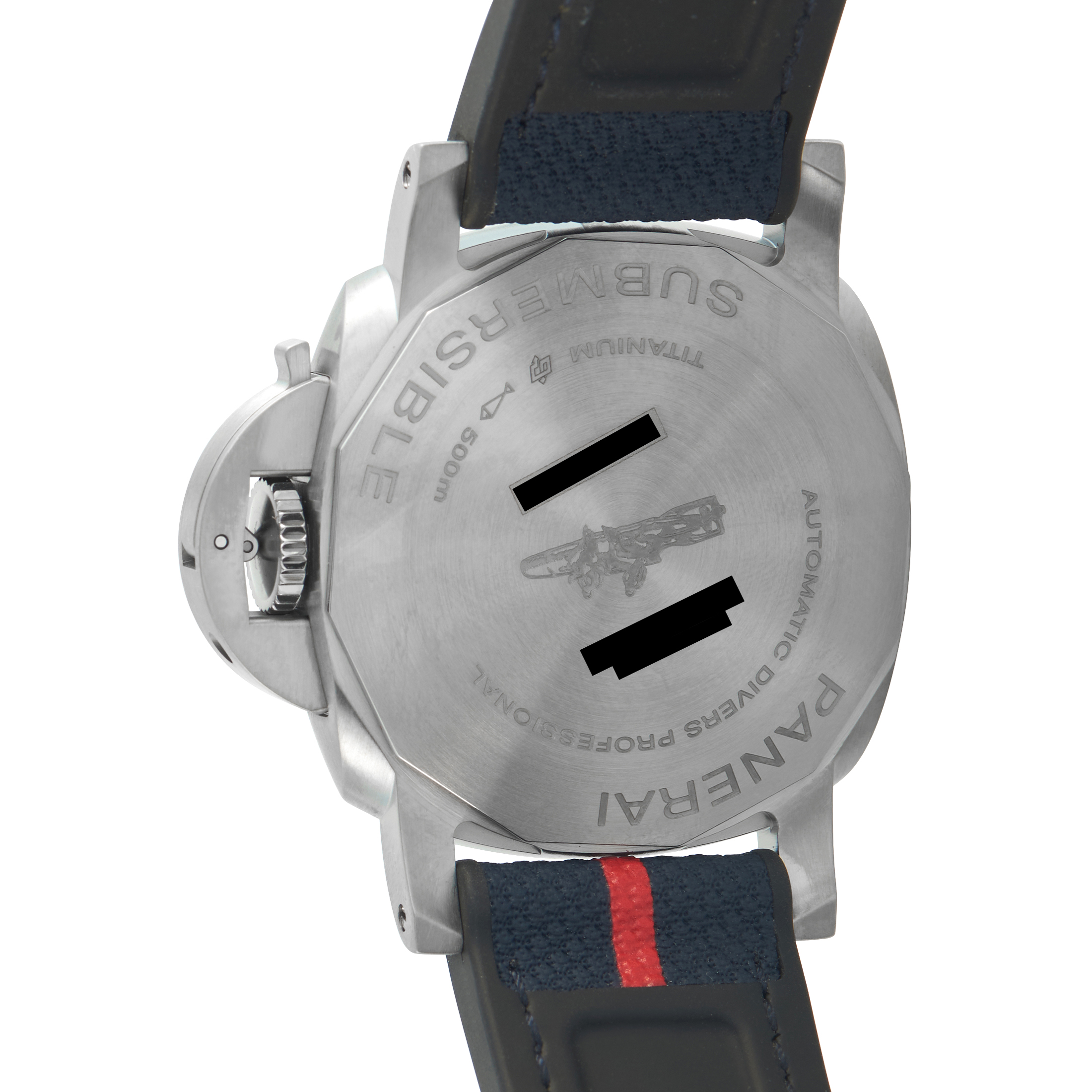 Issued exclusively through Panerai boutiques, this reference ties the Submersible line to the Luna Rossa sailing team partnership. It features a grade 5 titanium build and dual-time function, plus professional dive capability. The 42mm case carries a solid construction rated to 500 meters. The unidirectional bezel utilizes matte blue ceramic with a high-contrast diving scale. The deep blue dial carries Luna Rossa codes, with red accents across the GMT hand and small seconds hand. Inside runs the automatic P.900/GMT caliber, providing independent hour hand adjustment and a 72-hour power reserve.