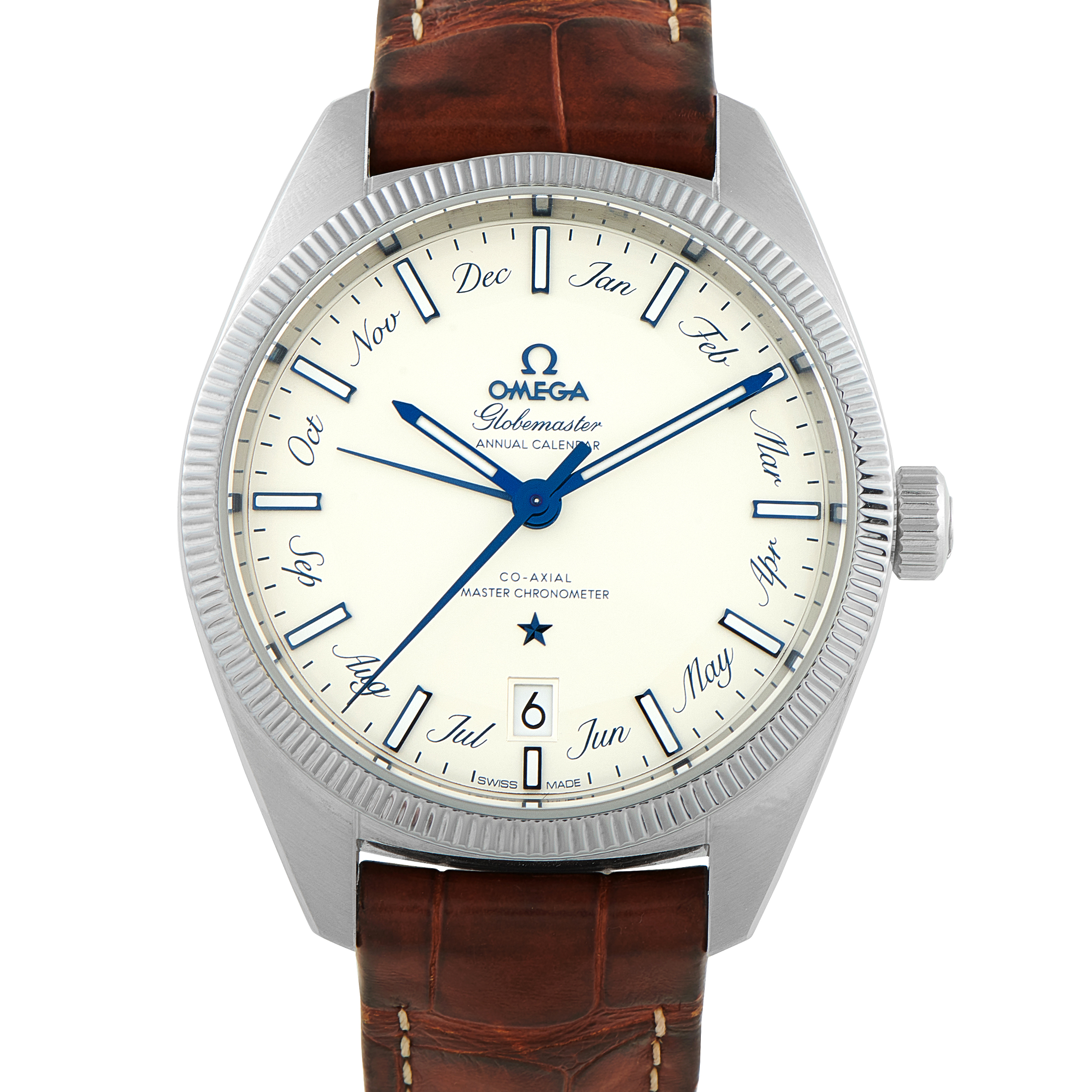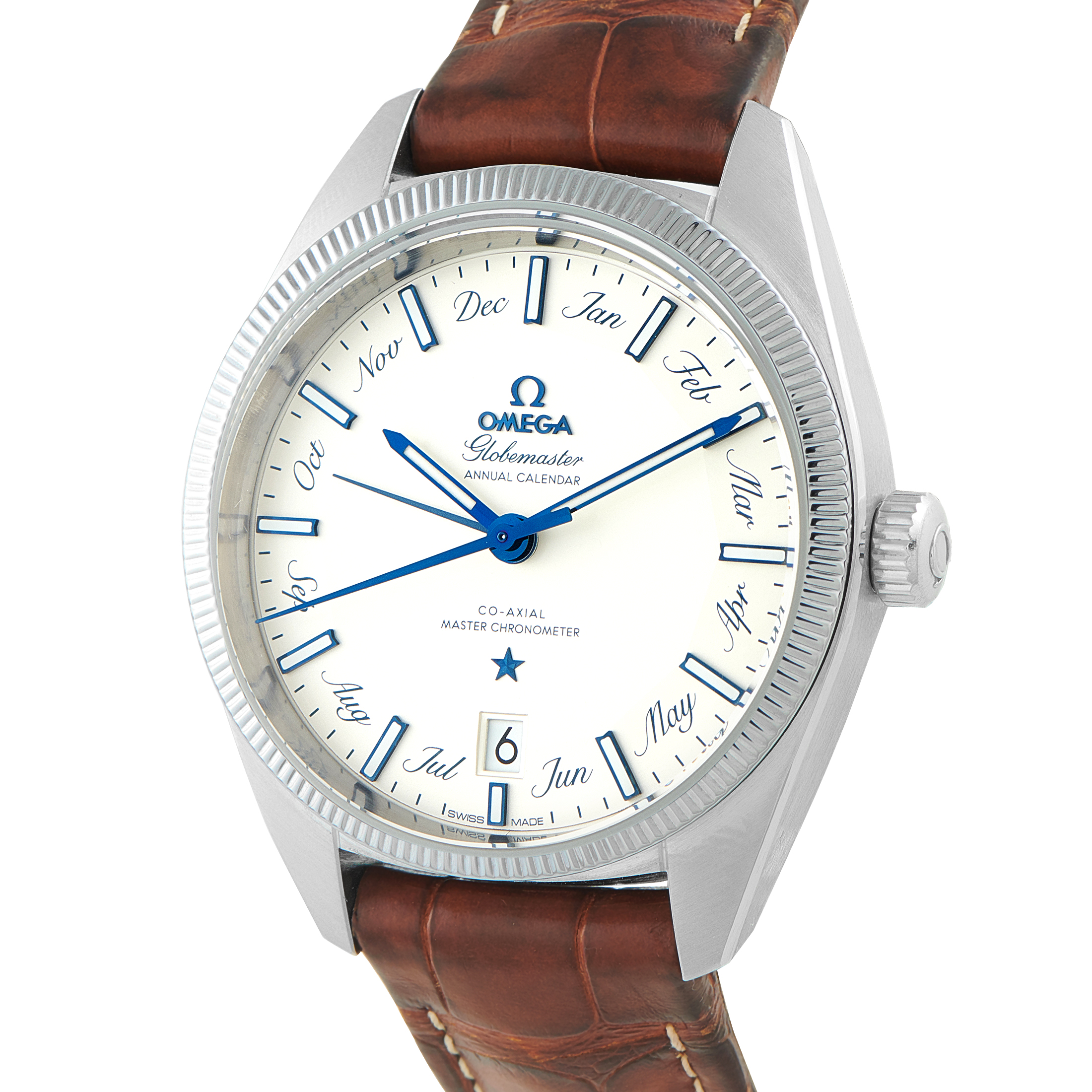 Offered pre-owned, this Omega Constellation Globemaster Steel on Leather Watch 130.33.41.22.02.001 comes complete with papers and the manufacturer’s box.