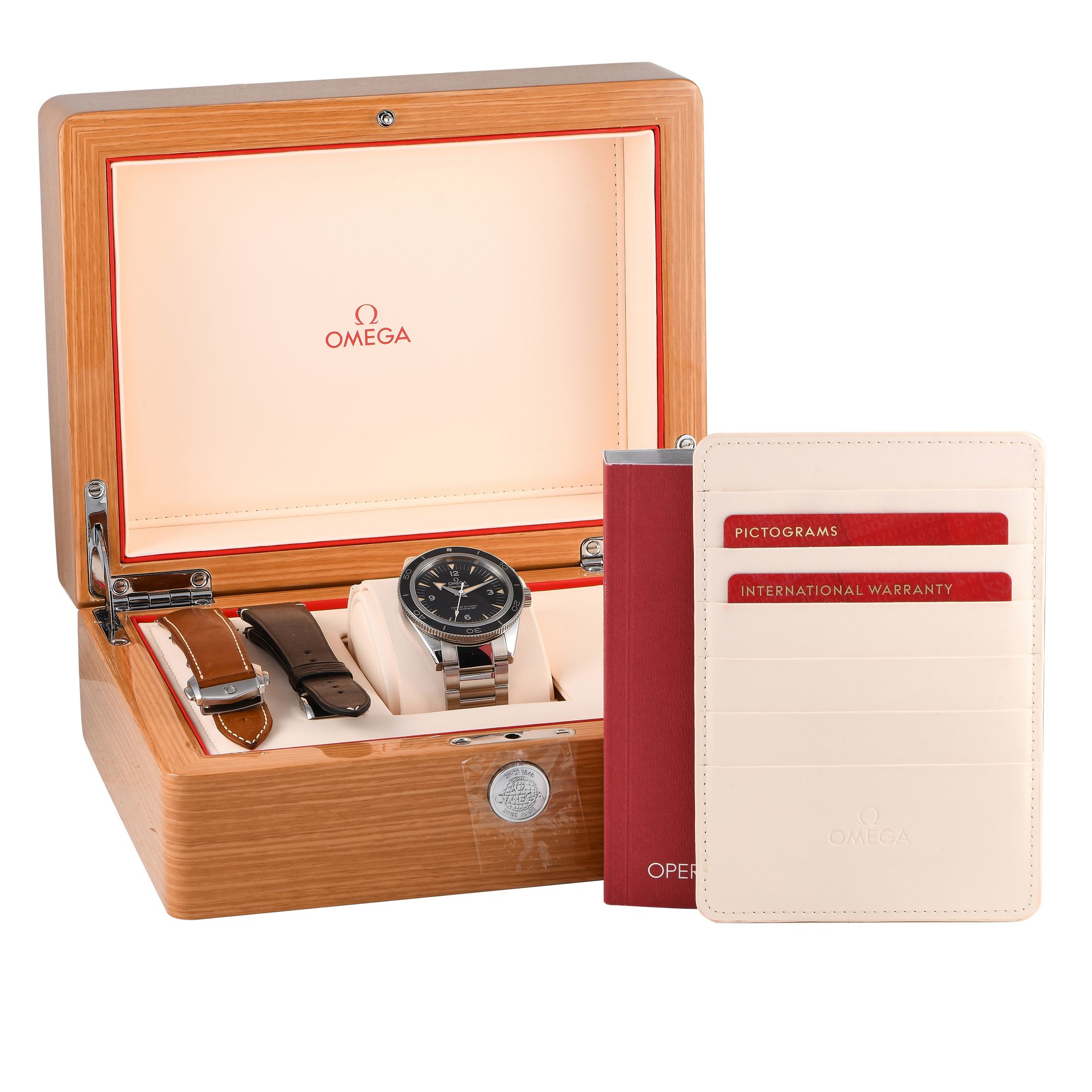 This pre-owned OMEGA Seamaster 300 Watch 233.32.41.21.01.002 is accompanied by papers, extra straps, and the manufacturer’s box.