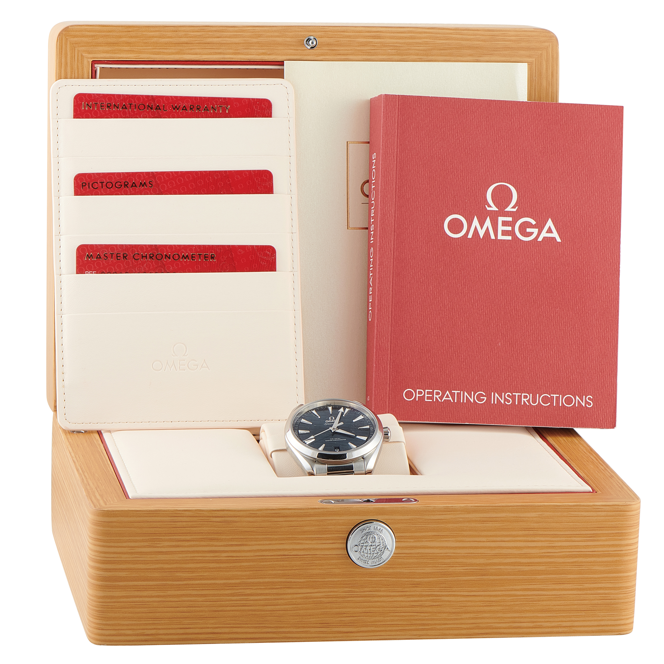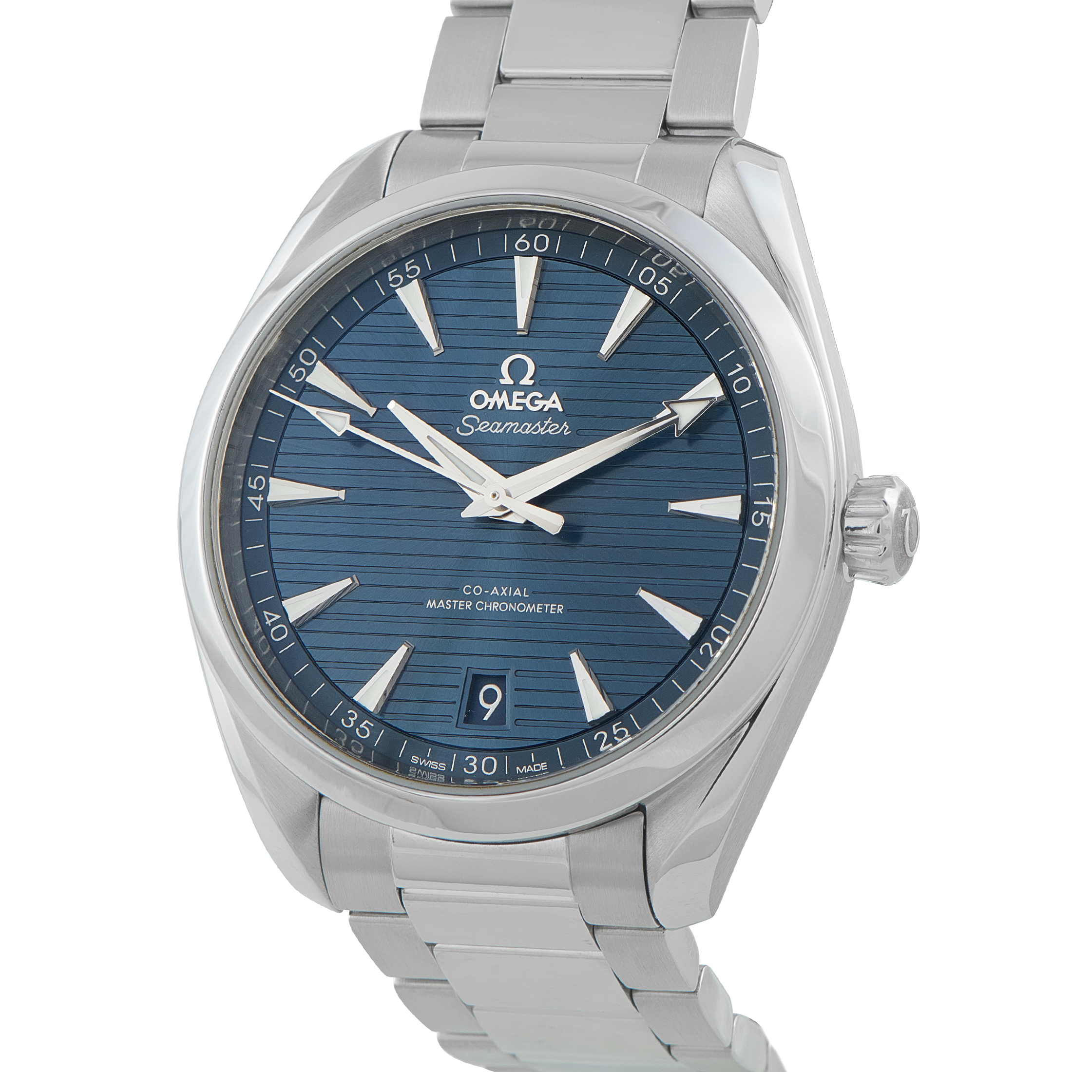 This is a pre-owned Omega Seamaster Aqua Terra Navy Dial Steel Watch 220.10.41.21.03.004. It includes papers and the manufacturer’s box.