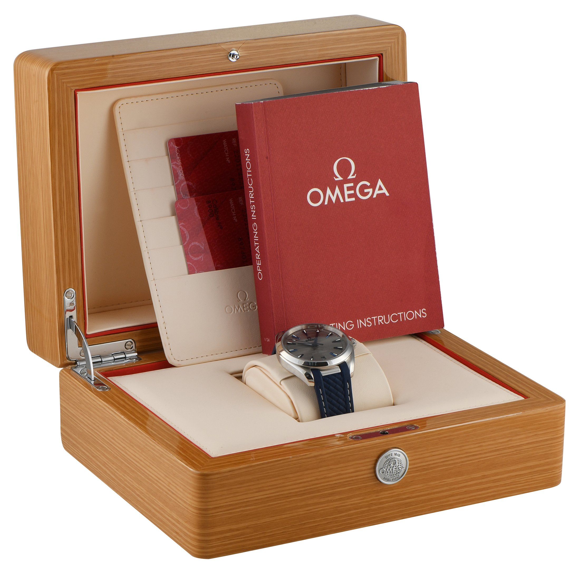 This is a pre-owned Omega Seamaster Aqua Terra Watch 220.12.41.21.06.001. It is accompanied by papers and the manufacturer’s box.