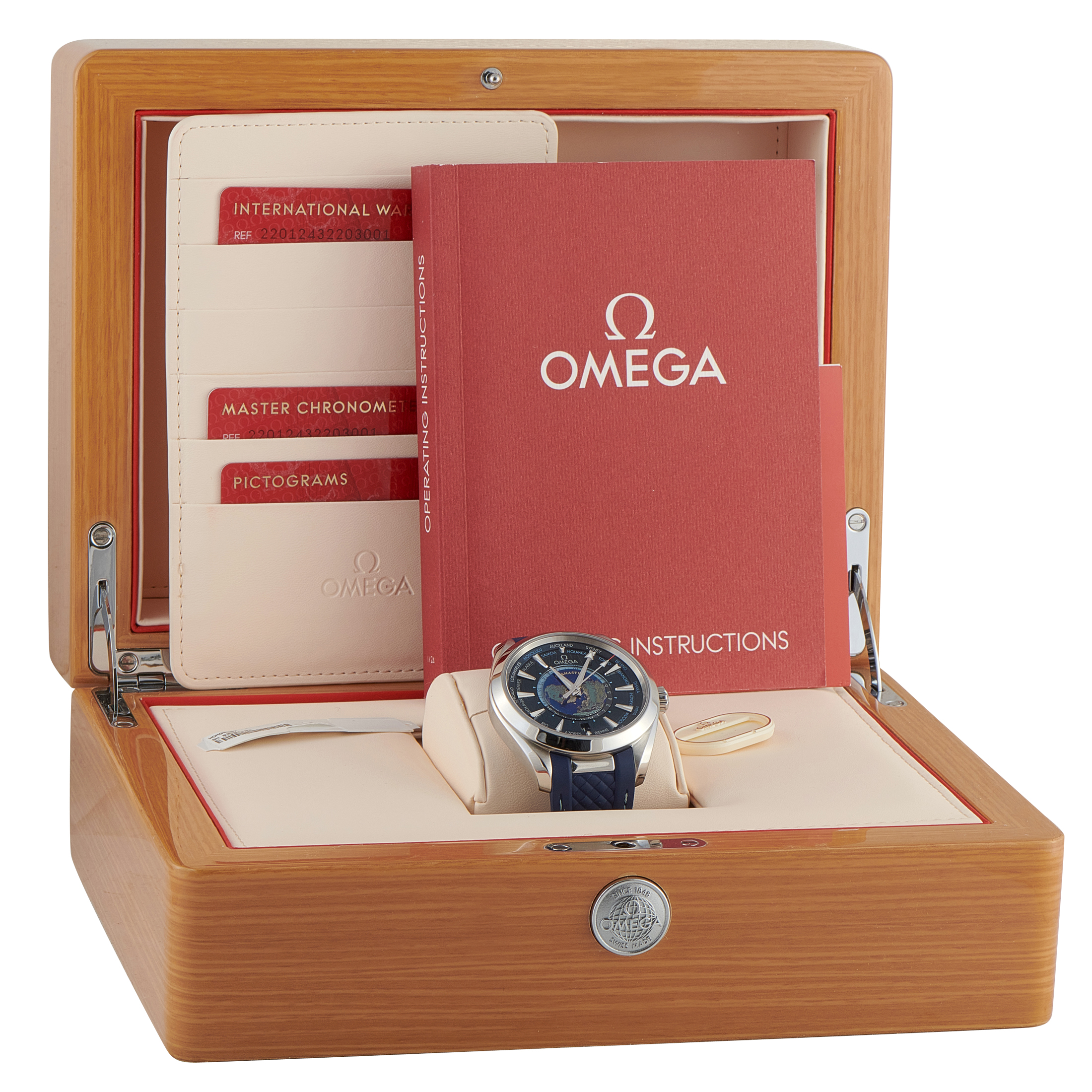 This is a pre-owned Omega Seamaster Aqua Terra Worldtimer Watch 220.12.43.22.03.001. It comes with papers and the manufacturer’s box.