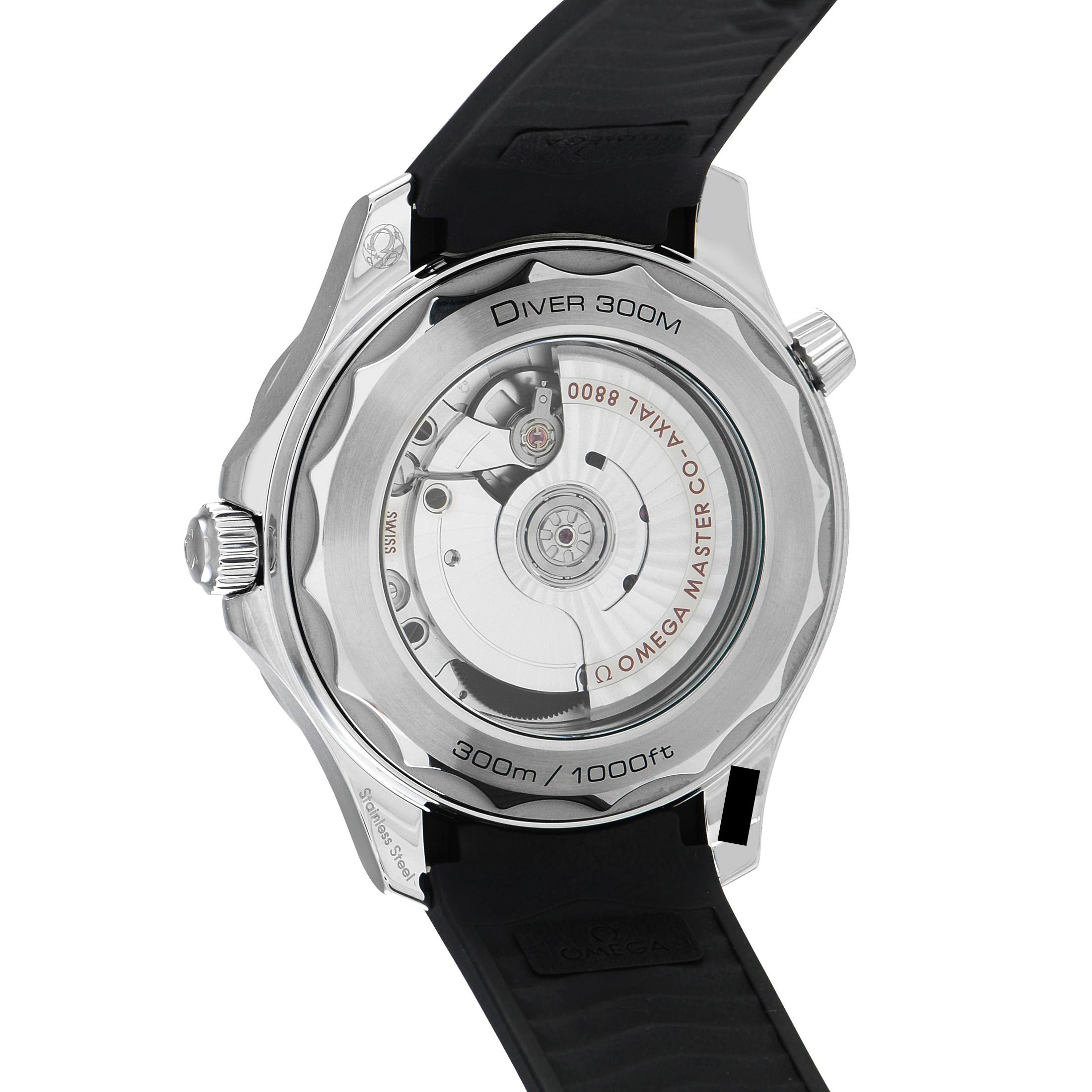 The Omega Seamaster Diver 300M ref. 210.32.42.20.01.001 stayed remarkably true to its roots while boasting modern innovations. This robust 42mm watch with 300m water resistance has its case crafted from steel and fitted with a black ceramic bezel with a diving scale in white enamel. It still has the signature wave-pattern dial, now laser-engraved on black ceramic. Also present are the instantly recognizable handset and the classic helium escape valve at 10 o’clock. This model is driven by the Co-Axial Master Chronometer Caliber 8800, offering improved precision and a long power reserve of 55 hours. It is presented on a black rubber strap with a tang buckle.