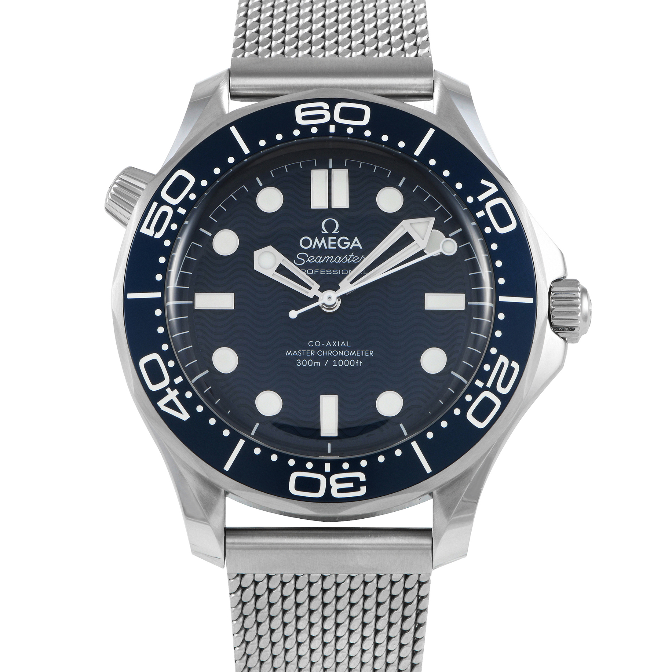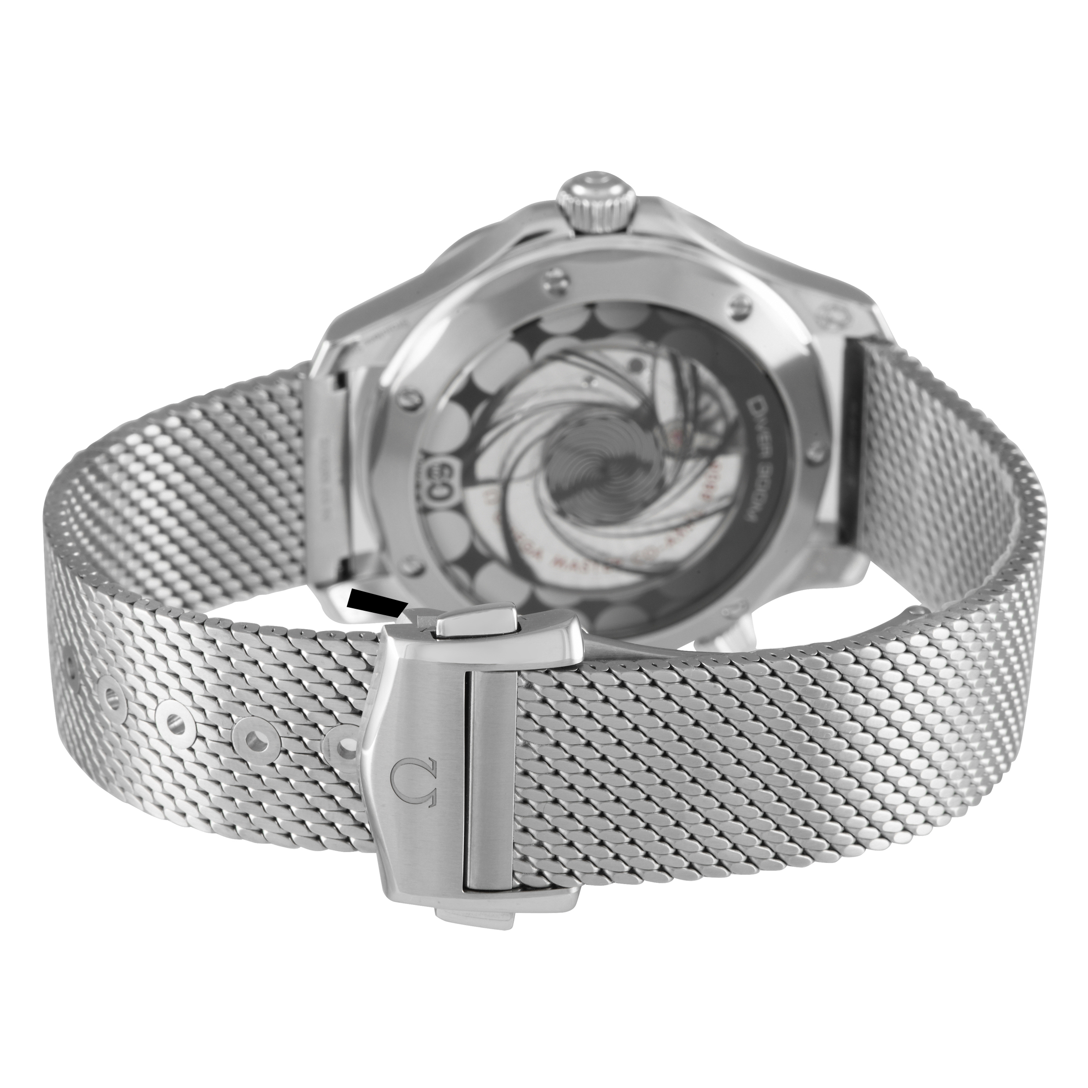 This timepiece features 42mm case and uni-directional rotating blue bezel made from Stainless Steel – it also includes a brushed mesh Stainless Steel bracelet that mimics the style of Bond’s titanium watch in “No Time To Die.” The blue dial comes complete with luminous silver toned hands and luminous index markers. It’s powered by an automatic Omega Calibre 8806 movement with 55 hours of reserve time and is water resistant up to 300 meters.
