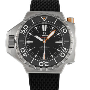 This pre-owned Omega Seamaster Ploprof 1200M Titanium Men’s Watch 227.90.55.21.01.001 comes with papers, an additional titanium mesh bracelet, and a travel case.