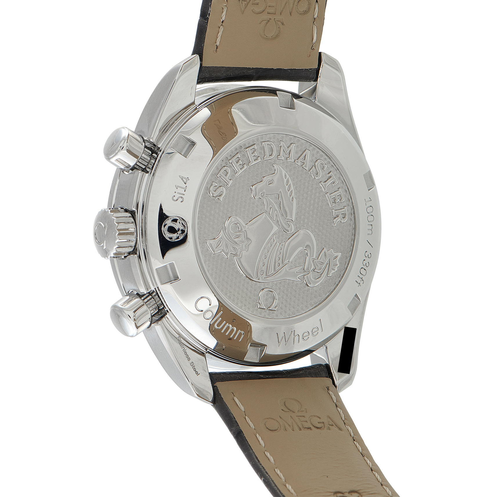 This reference is driven by the Co-Axial Caliber 3330, which integrates a column-wheel mechanism and a silicon balance spring for timing accuracy.