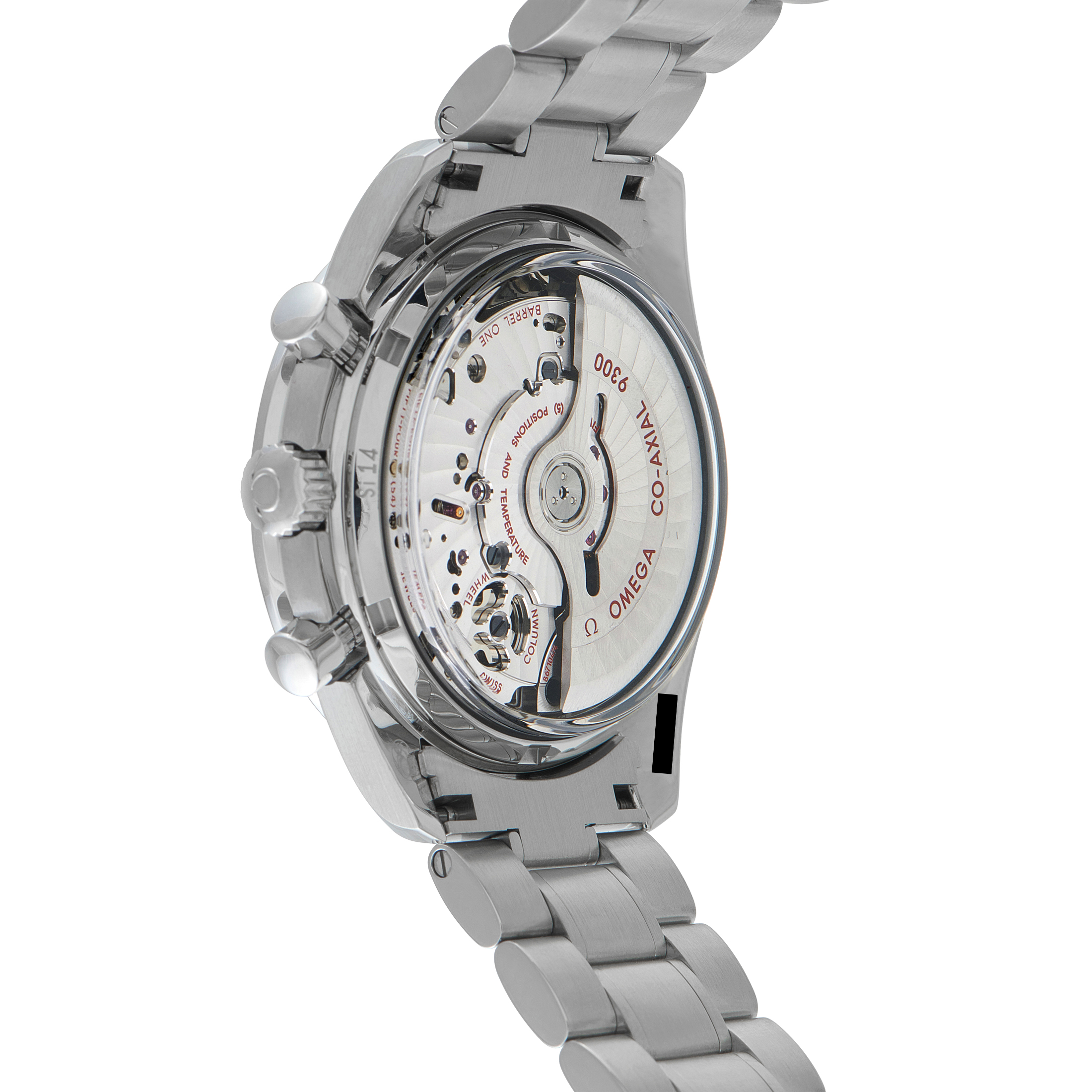 Defined by its bi-compax dial layout, this all-steel Speedmaster keeps the design disciplined and legible. The sub-dials sit with clear separation, placing continuous seconds at 9 o’clock and a combined 60-minute and 12-hour chronograph register at 3, reducing visual clutter. The 44.25 case gives the dial room to breathe, allowing the black surface and applied markers to remain legible at a glance. A fixed tachymeter bezel maintains continuity with established Speedmaster design. Powering the watch is Omega’s Co-Axial Caliber 9300, a high-performance automatic chronograph with 60 hours of power reserve.